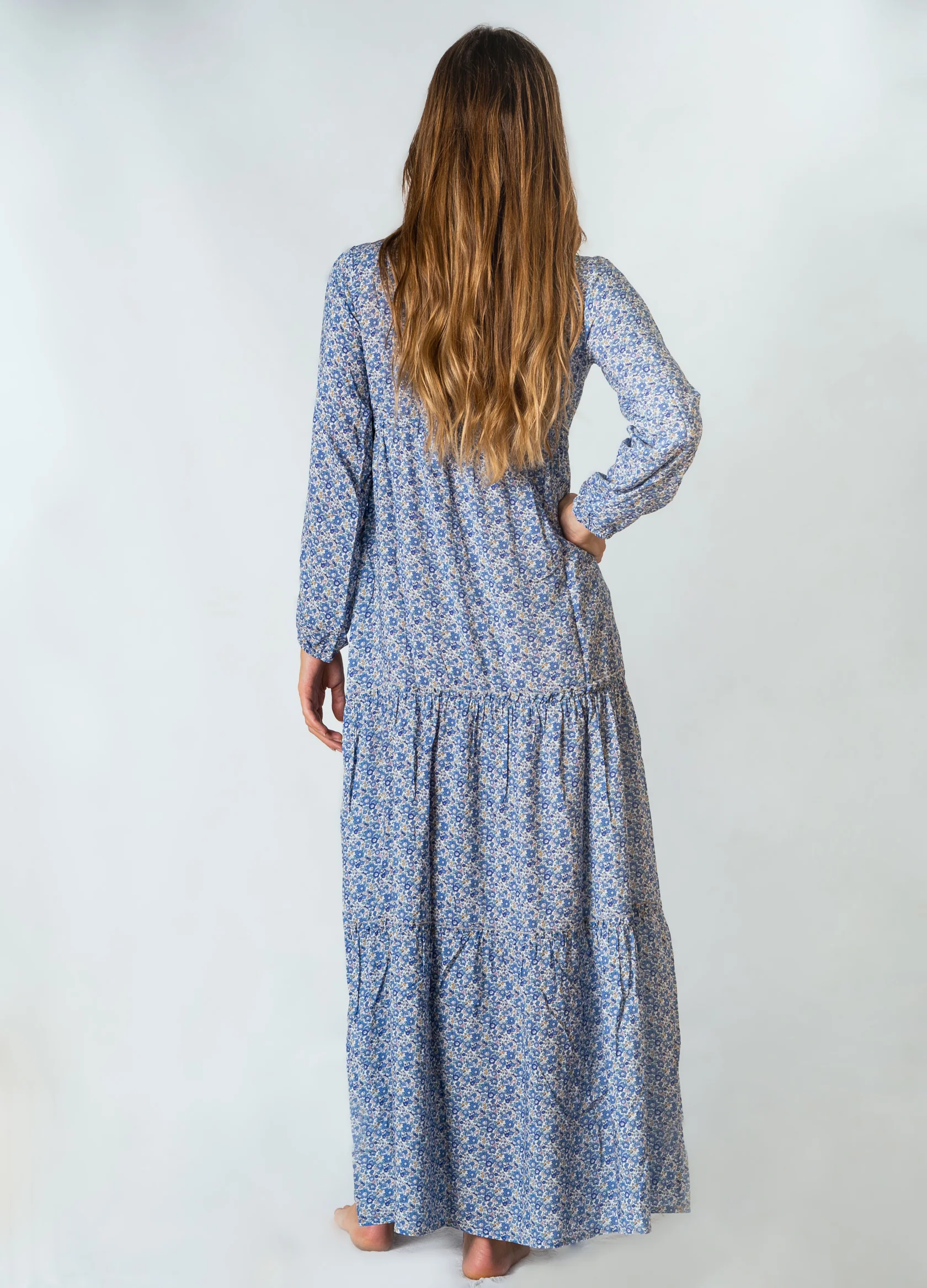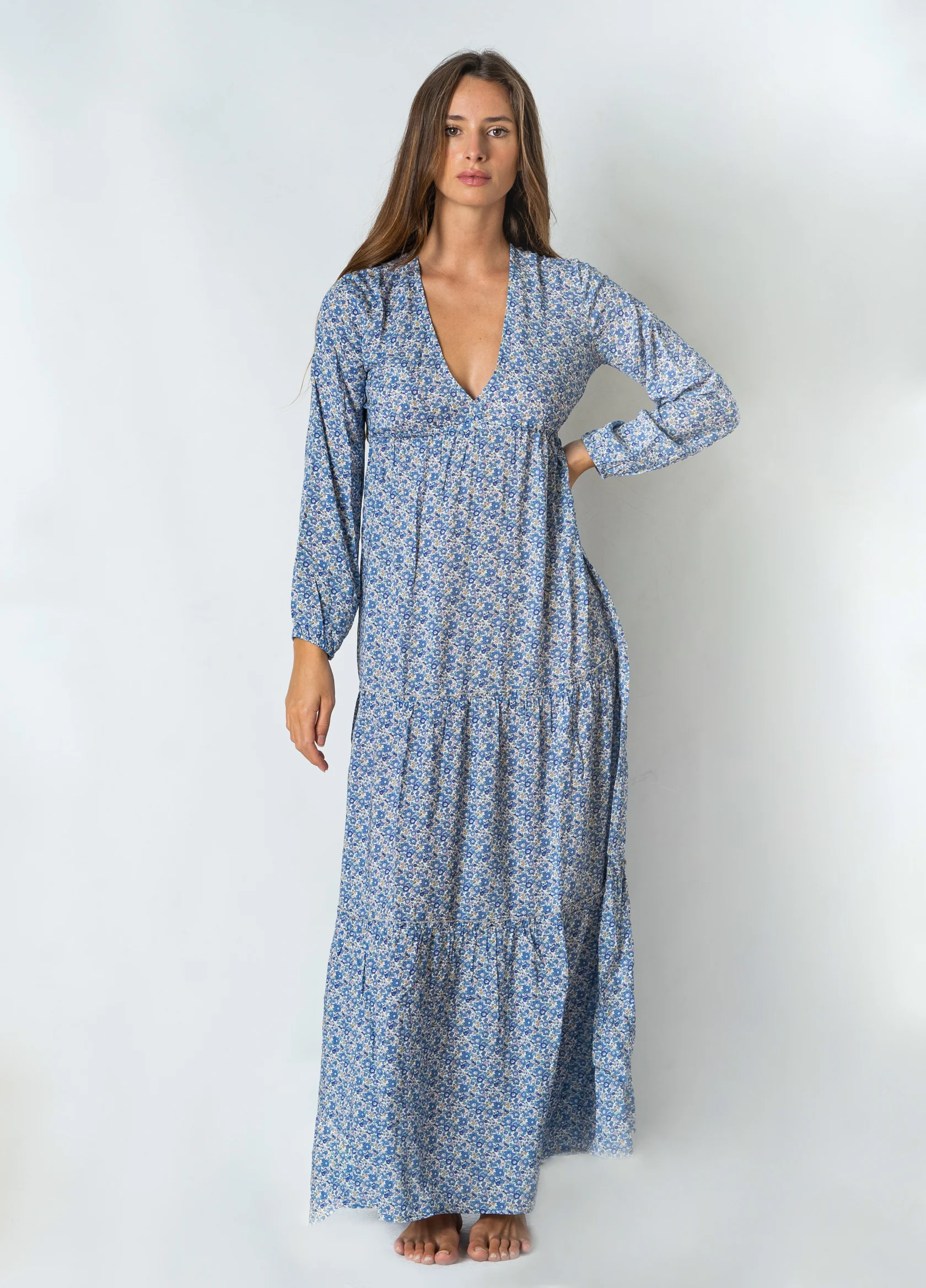 Abito con maniche lunghe ed ampia scollatura a V, morbido e ampio dal seno in giรน