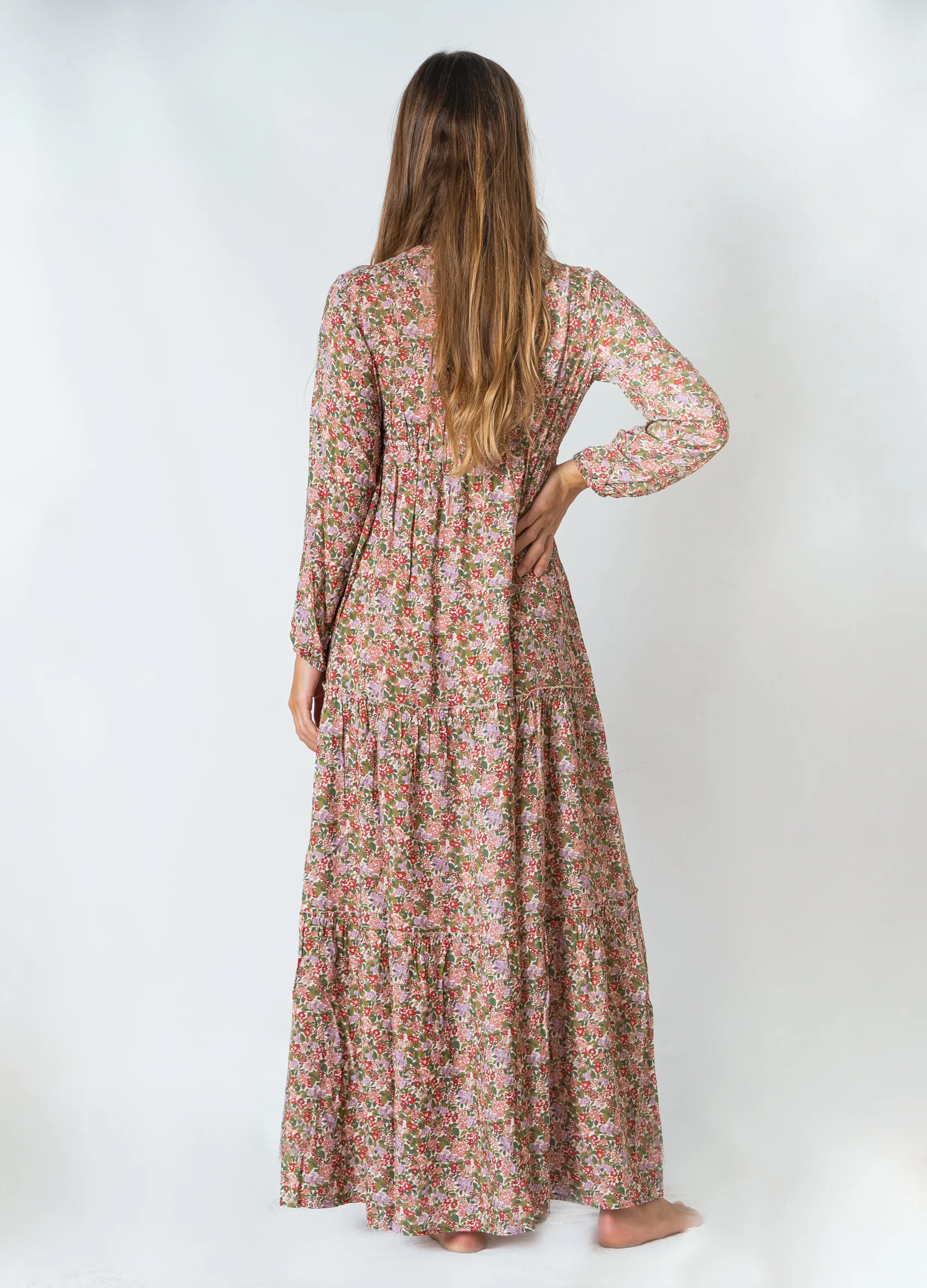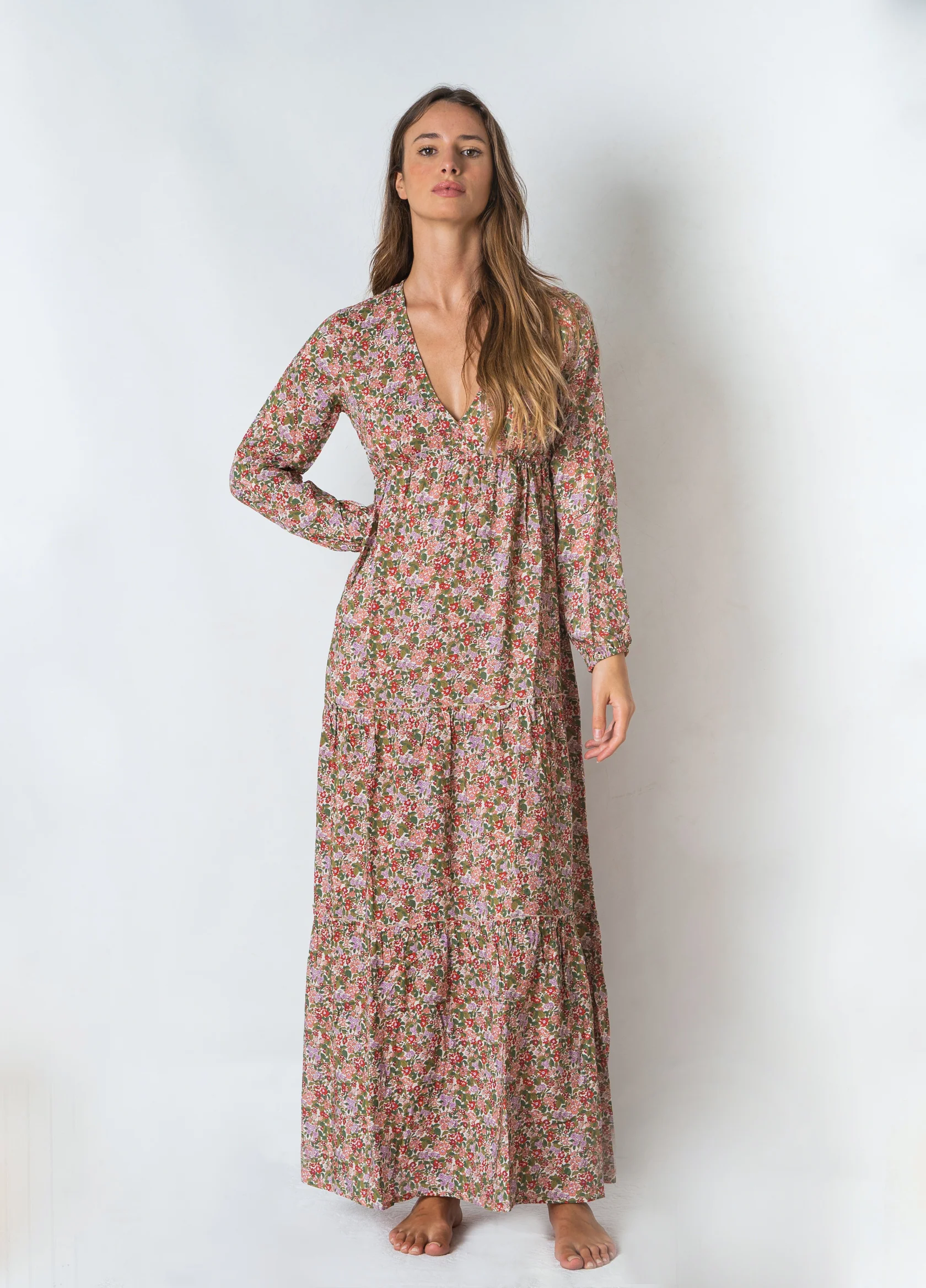 Abito con maniche lunghe ed ampia scollatura a V, morbido e ampio dal seno in giรน