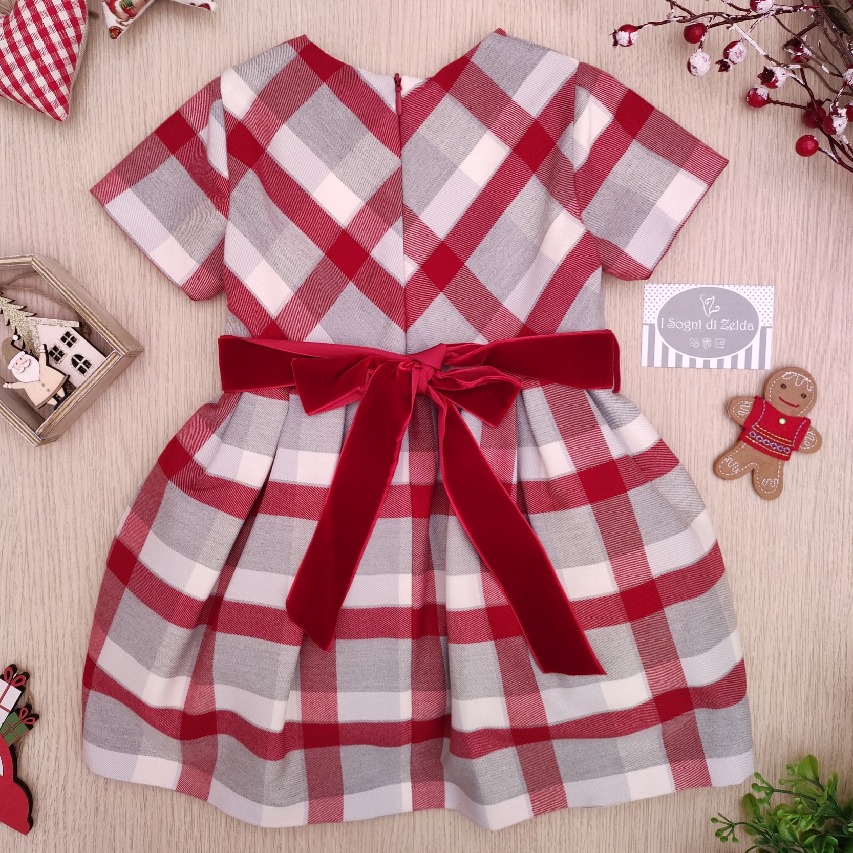 Abito Ambarabà – Tartan Rosso/Grigio Maniche Lunghe