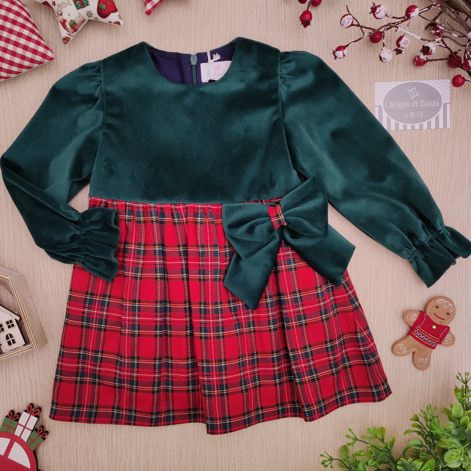 Abito Ambarabà – Tartan Rosso/Velluto Verde