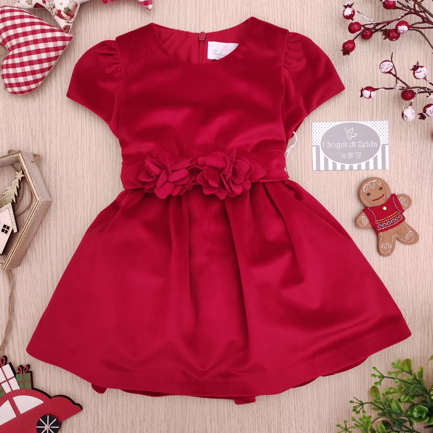Abito Ambarabà – Velluto Rosso 12, 18 mesi – 100% Poliestere – Fodera 100% cotone – Made in Italy