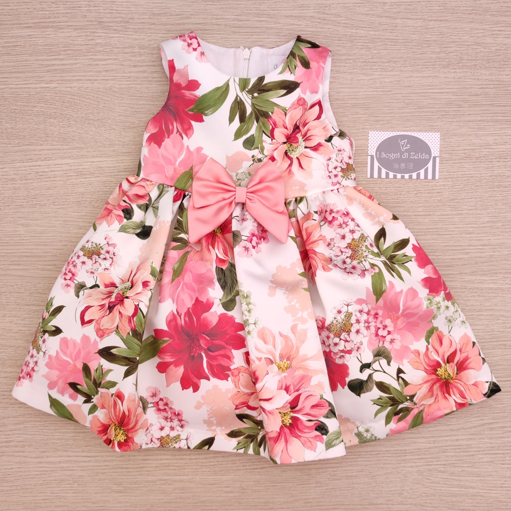Abito Cerimonia Bambina Ambarabà – Raso Fiorato con Fiocco