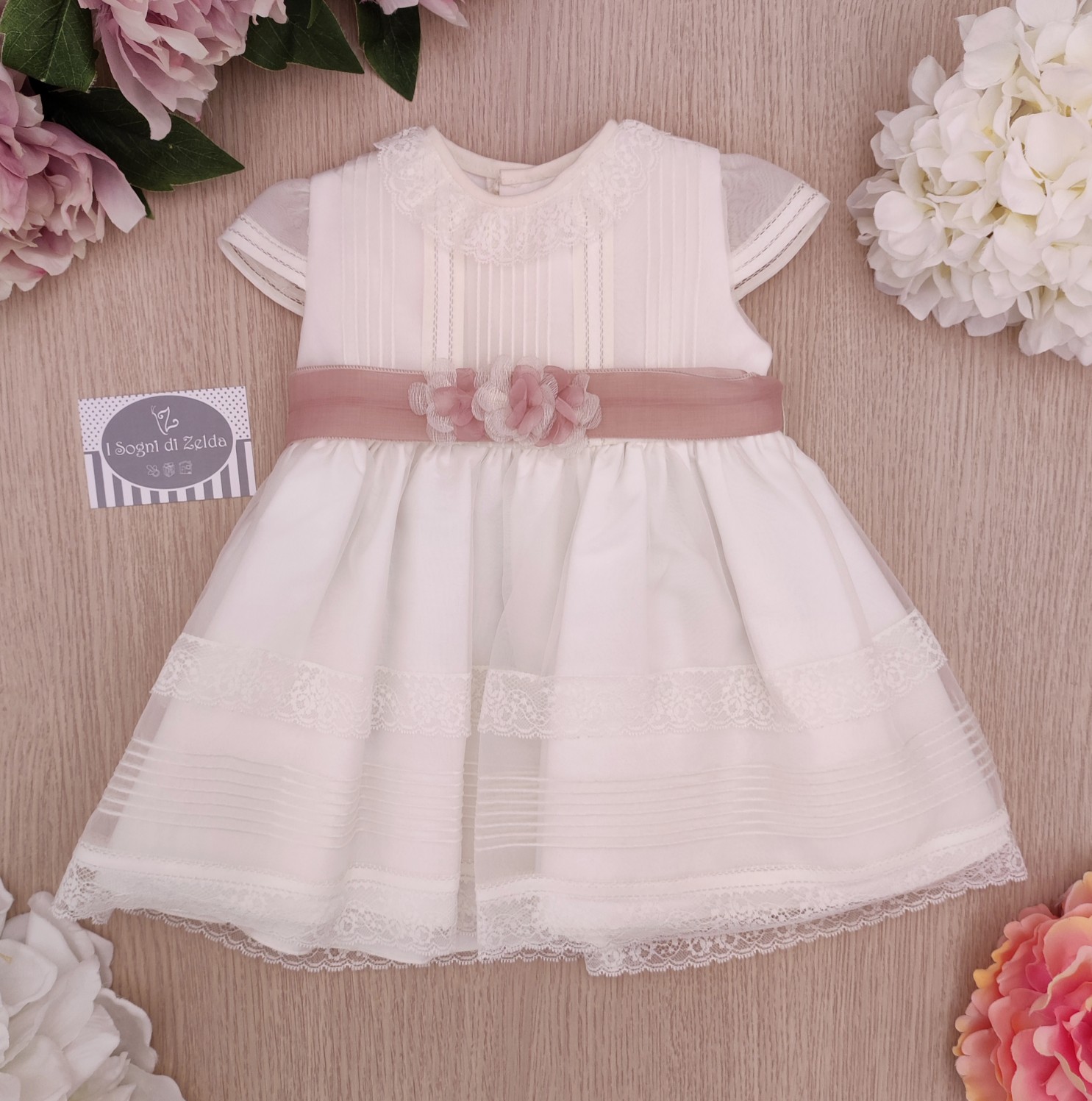 Abito Charo – Panna Rosa Antico Pizzo 24 mesi – Fodera: 67% poliestere, 33% cotone; Abito: 100% poliestere – Made in Spain 400 Cristal