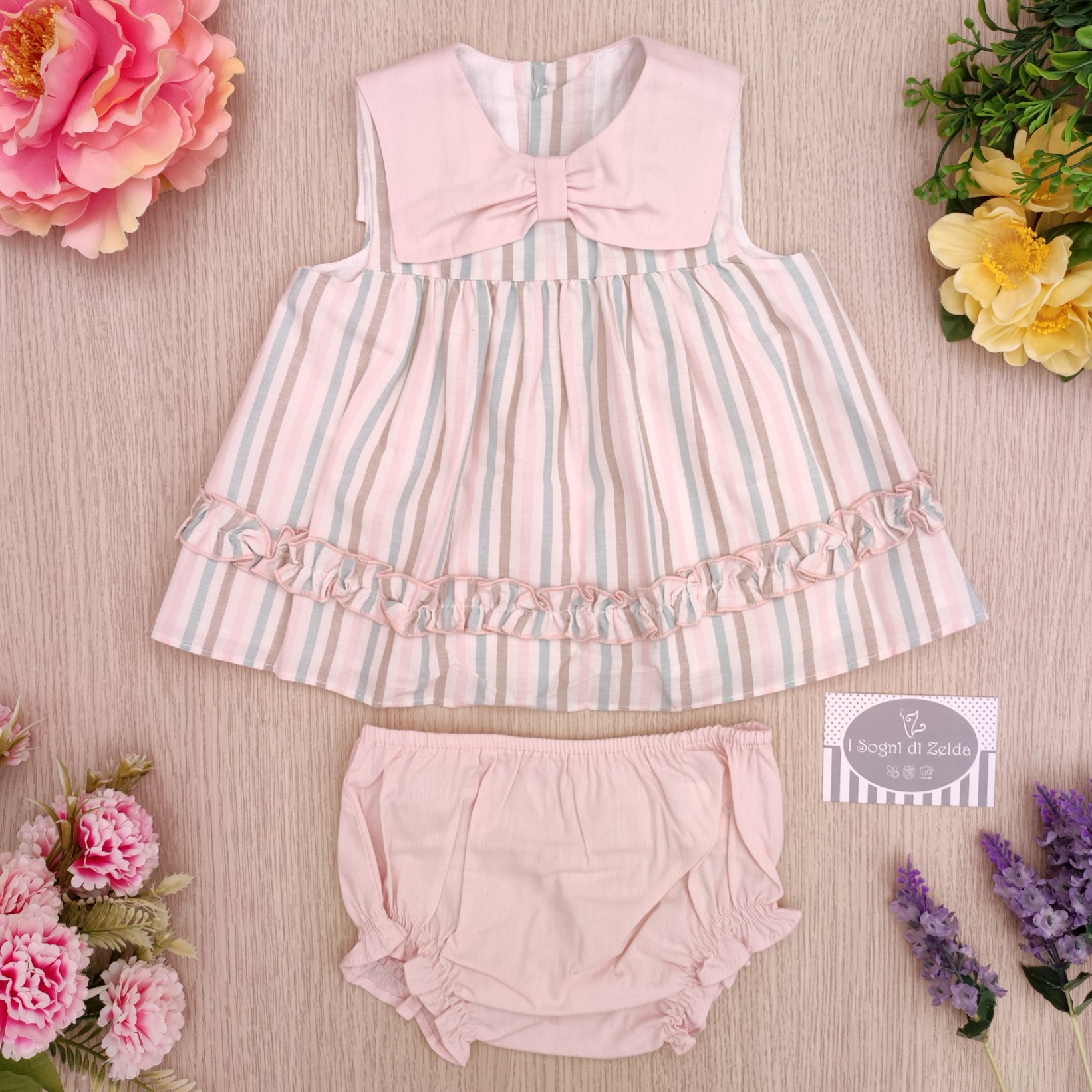 Abito Del Sur – Rosa e Righe con copripannolino 12 mesi, 18 mesi – 61% cotone, 39% viscosa; fodera 52% poliestere, 48% cotone – Made in Spain