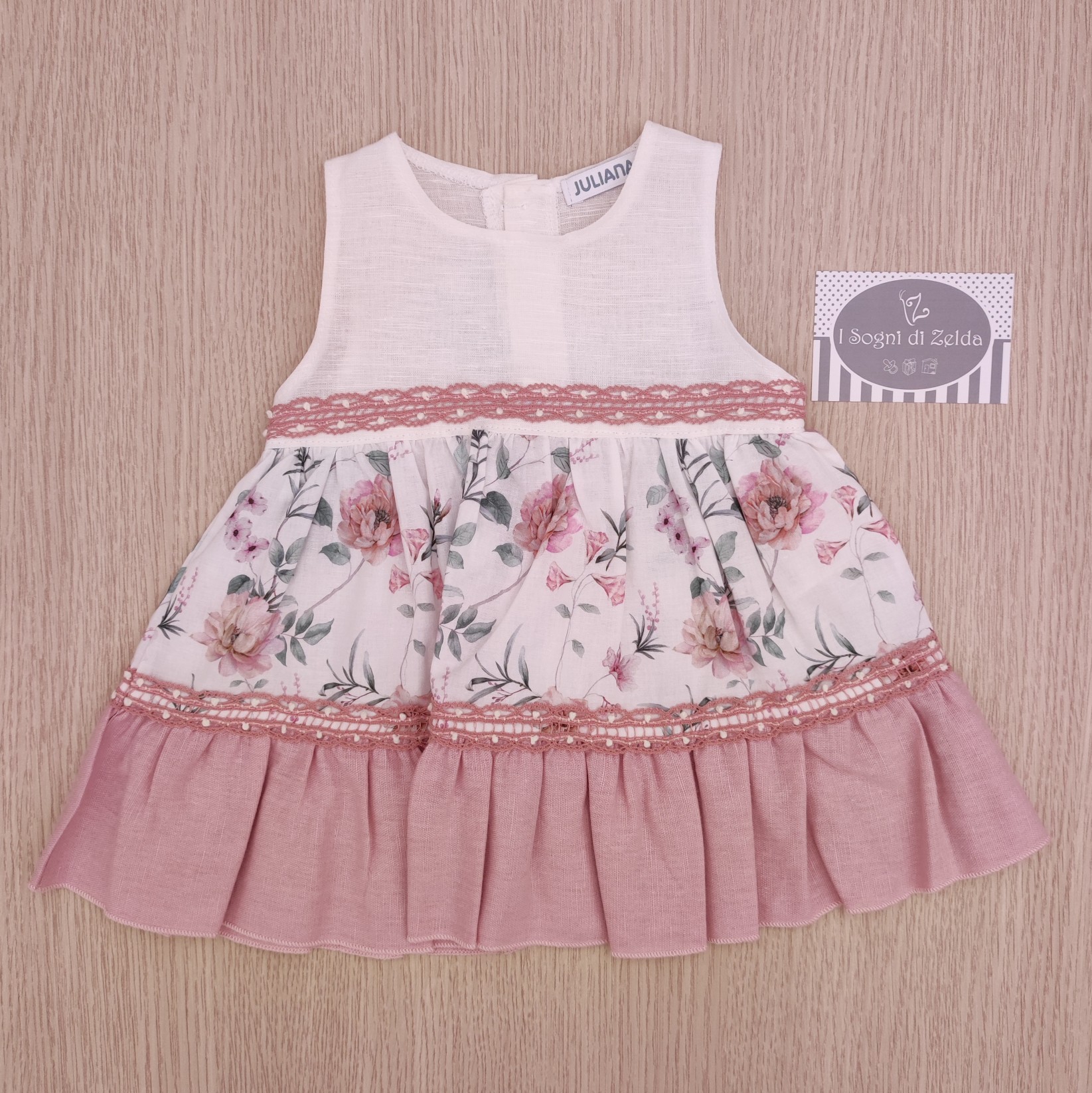 Abito Juliana – Fiorato Rosa Antico 18 mesi – 100% cotone – Made in Spain