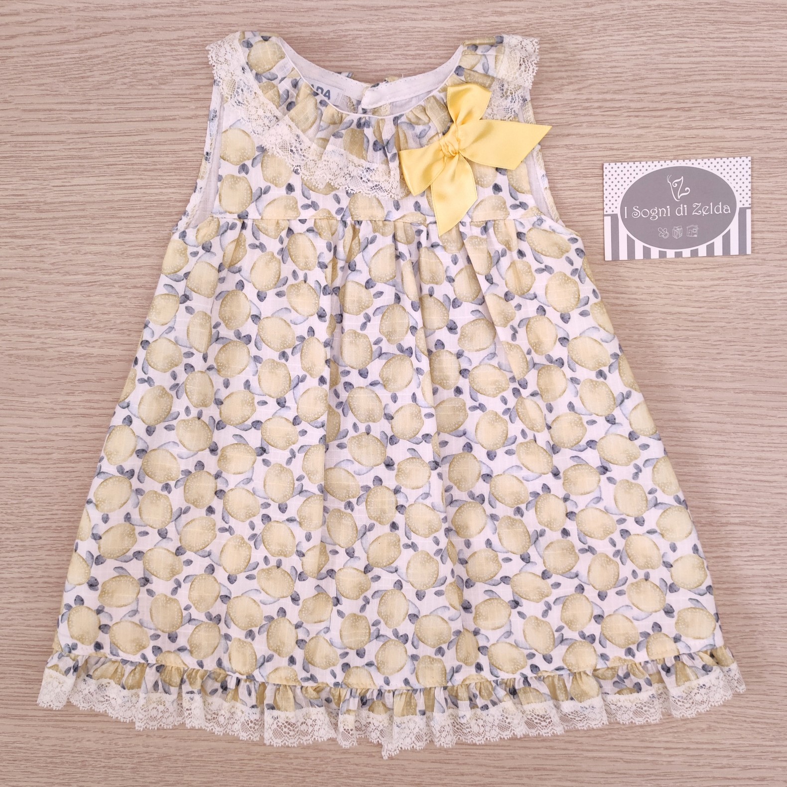 Abito Juliana – Tartarughe Gialle con pizzo 12-18-36-48 mesi – 100% cotone – Made in Spain