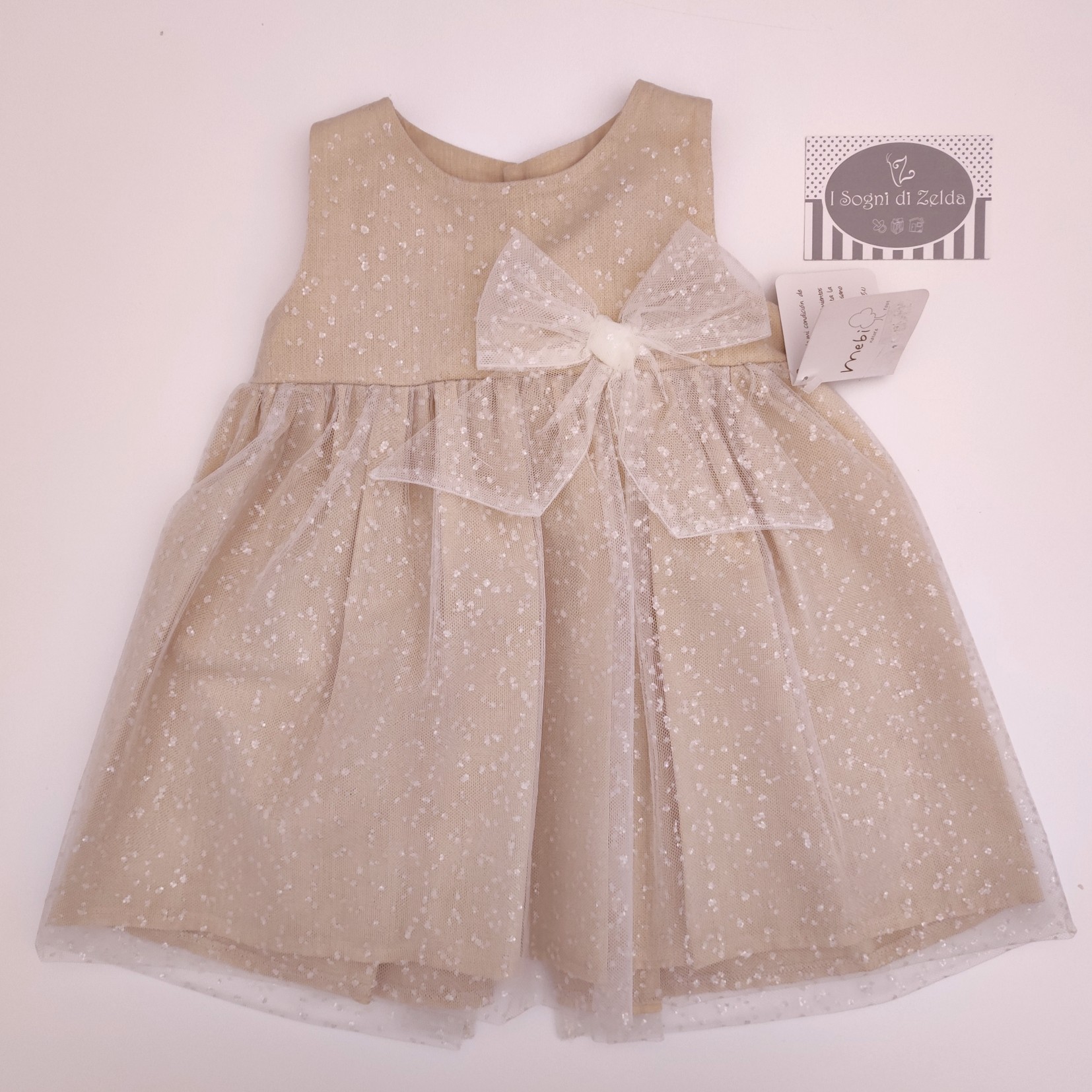 Abito Mebi – Beige Tulle con micro paillettes 18 mesi – Esterno: 67% poliestere, 33% cotone – Made in Spain