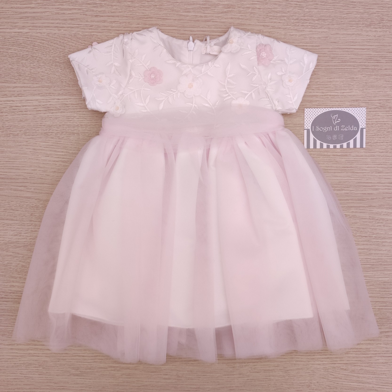 Abito Ninnaoh – Fiori Bianco/Rosa 6 mesi (68cm) – 50% cotone, 50% poliestere – Made in Italy