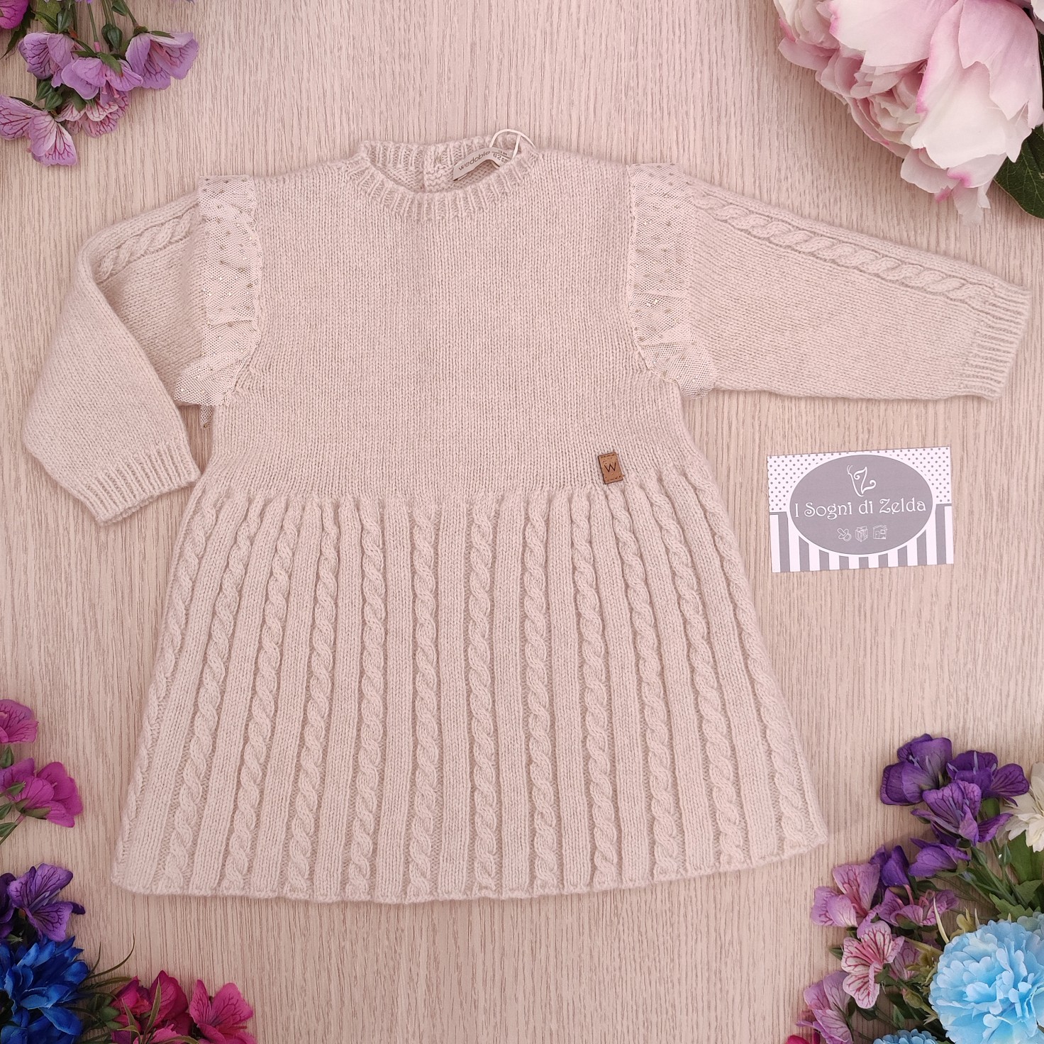 Abito Wedoble – Beige Treccine in Lana 12 mesi, 3 anni – 90% lana merino, 10% cashmere – Made in Portugal