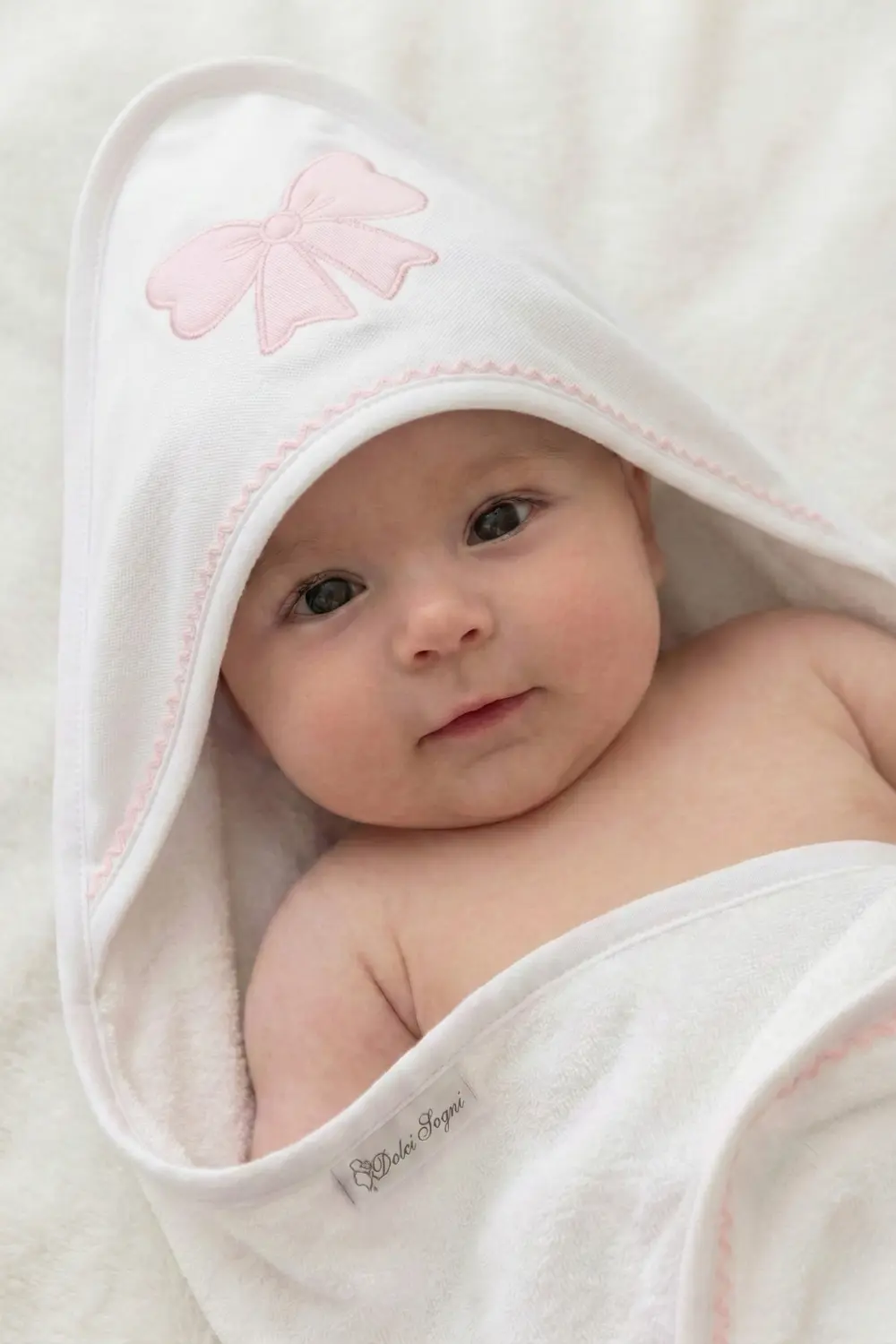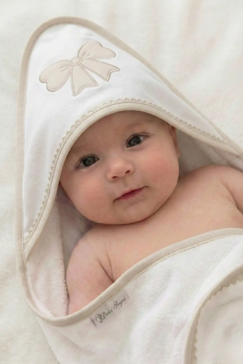 Accappatoio Neonato Fiocco Triangolo 100% Cotone Made in Italy