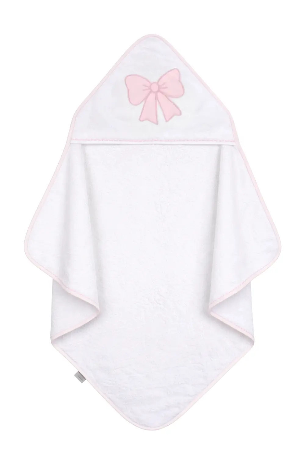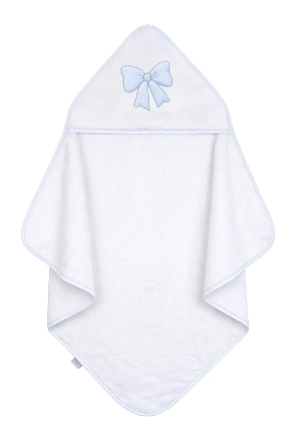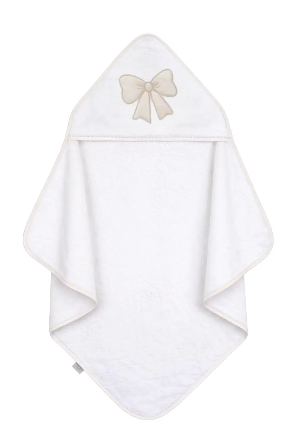 Accappatoio neonato fiocco a triangolo con cappuccio ricamato, ideale per avvolgere il bambino dopo il bagnetto con delicatezza e stile. Disponibile con ricamo nei colori panna, cielo e rosa. Misura: 70ร75 cm Composizione: 100% cotone