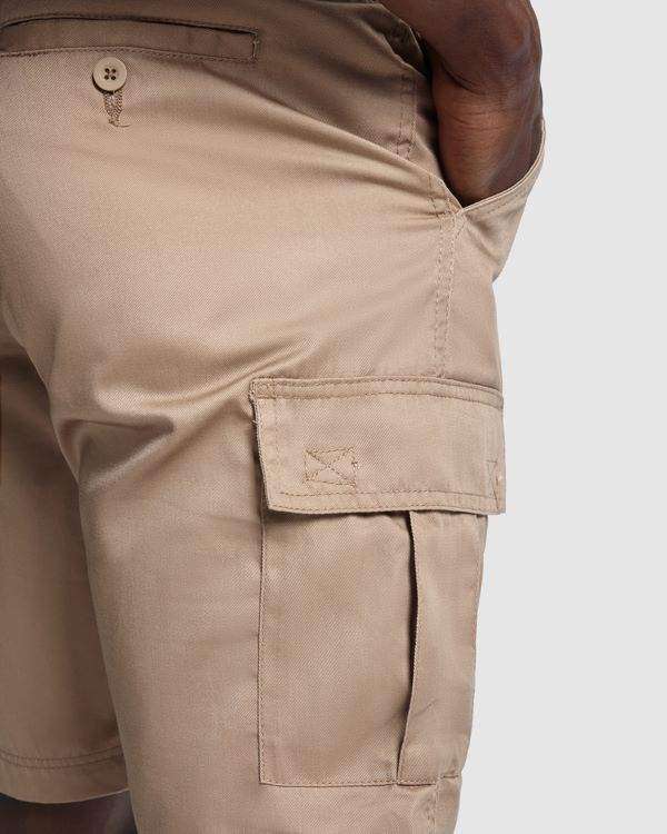 Bermuda Armour Bermuda molto confortevole per il tempo libero e il lavoro Bermuda con tasche Girovita con elastico regolabile nei lati Due tasche frontali Due tasche laterali con patta, chiusura in velcro e soffietto centrale Due tasche posteriori con bottone. Material: 80% poliestere / 20% cotone, serge Peso 200 g/mยฒ.