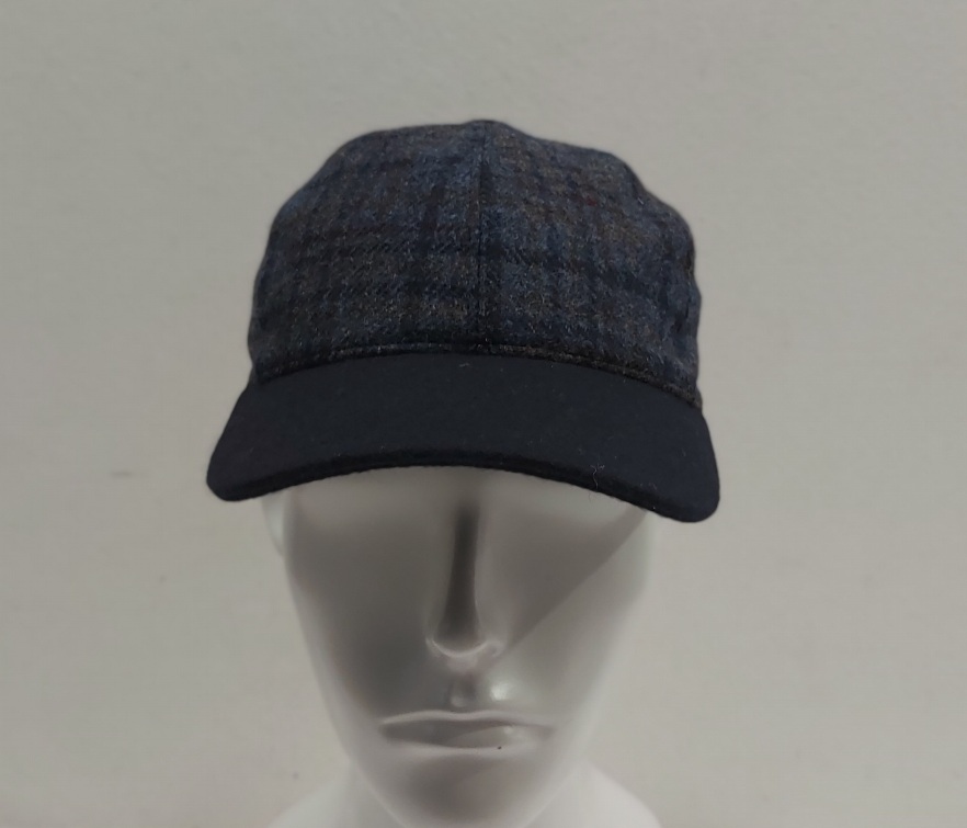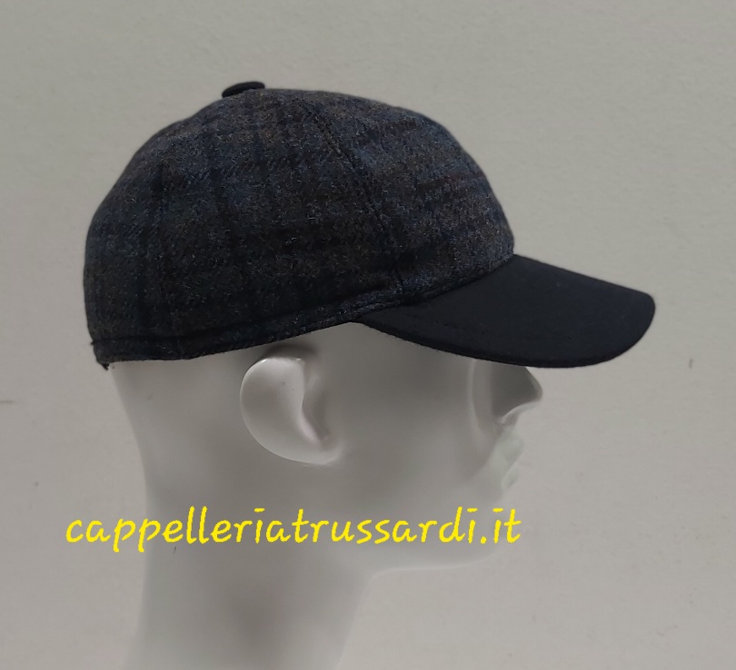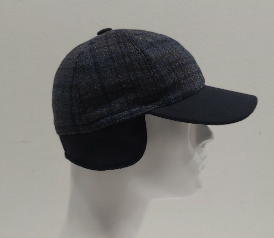 BERRETTO BASEBALL VISIERA 100% LANA SCOZZESE BLU CON PARAORECCHIE MADE IN ITALY