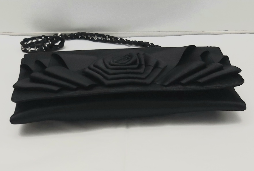 BUSTA POCHETTE CERIMONIA A SPALLA GMV GIAN MARCO VENTURI IN RASO E APPLICAZIONE IN GROSGRAIN NERO CON APPLICAZIONE COME FOTO MISURE  CM 27 X 12 X 2  CIRCA TASCHINA INTERNA CON CERNIERA FODERATA