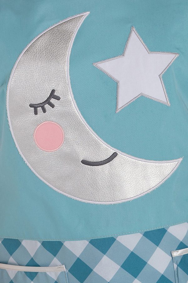 Colore turchese con fondo a quadri, con simpatica luna dettaglio e stella argento.
