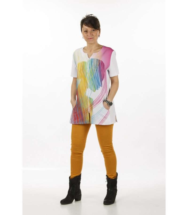 Camice corto Donna Disponibile Solo in Taglia S Chiusura Con Zip Manica corta due tasche avanti Spacchetti laterali Vestibilitร comfort Effetto Color a Stampa in tessuto sublimatica Composizione Tessuto 100% poliestere No stiro – Asciugatura rapida