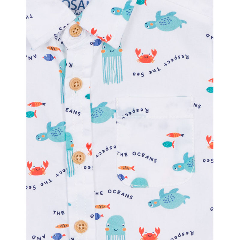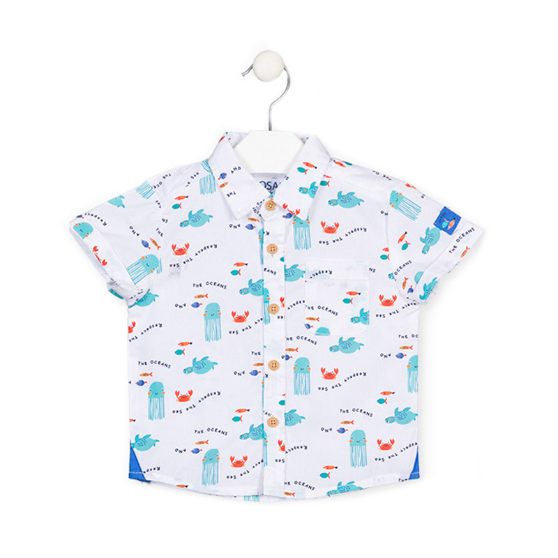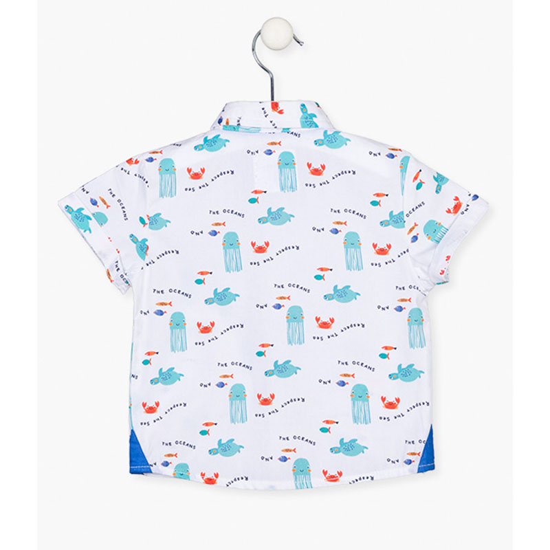 Camicia Losan 117-3000AL. Camicia elegante per un ragazzo, realizzata in cotone. Con una stampa di abitanti marini. Il tuo bambino sarร  a suo agio in una camicia cosรฌ carina.