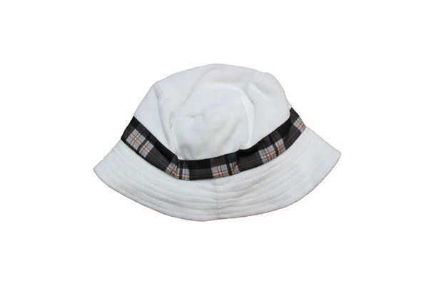 Cappellino bianco neonato Il Corredino in ciniglia con fantasia scozzese.