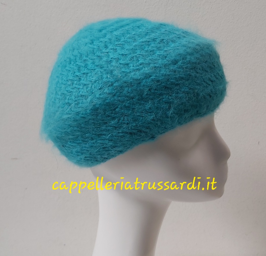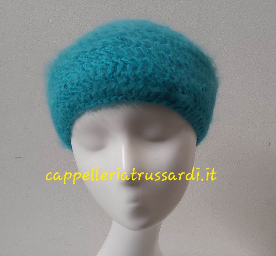 CAPPELLO BASCO VERDE ACQUA DONNA in maglia ANGORA MADE IN ITALY