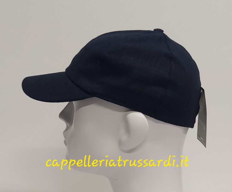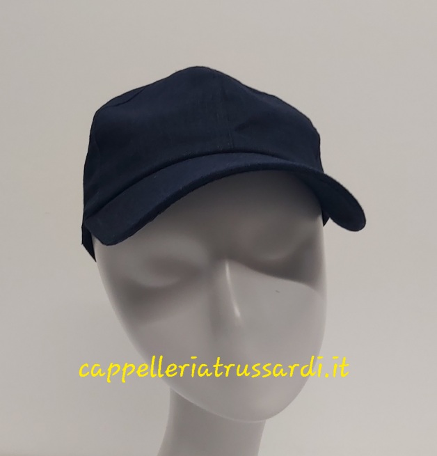 CAPPELLO BASEBALL VISIERA 100% LINO MADE IN ITALY BLU SCURO CHIUSO DIETRO