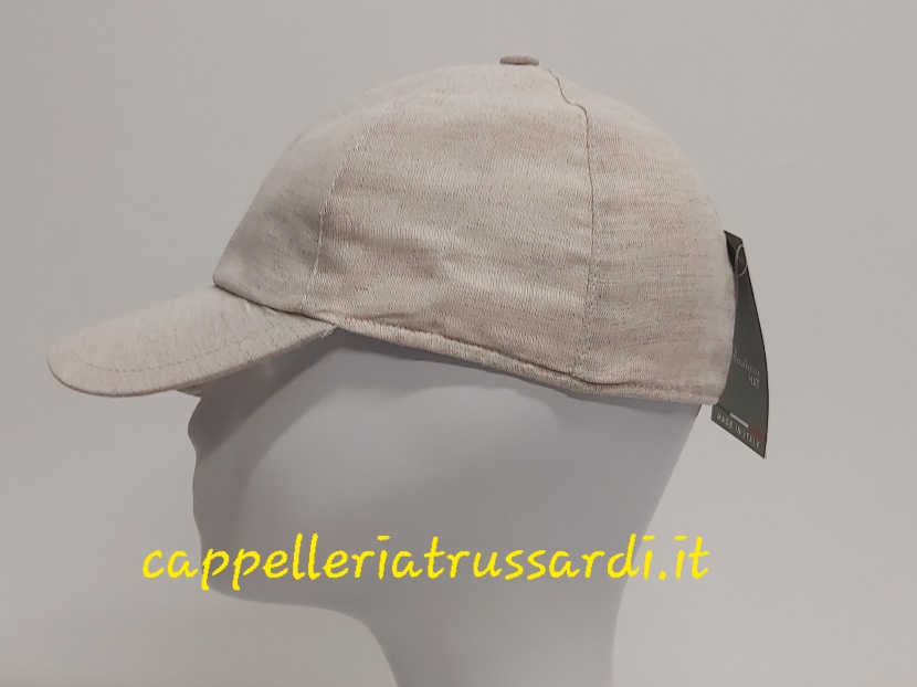CAPPELLO BASEBALL VISIERA 100% LINO MADE IN ITALY ECRU BEIGE CHIUSO DIETRO