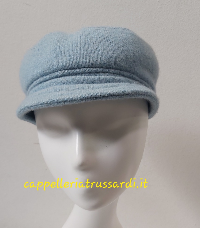 CAPPELLO BERRETTO VISIERA AZZURRO PURA LANA MADE IN ITALY MISURA 55/56