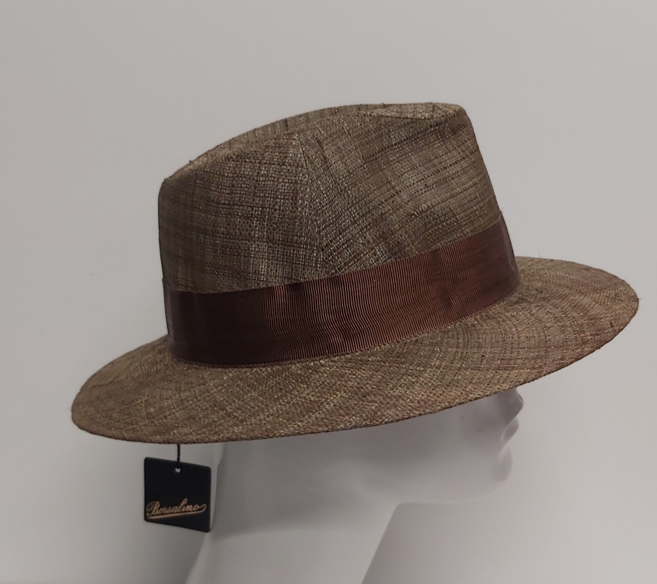 CAPPELLO BORSALINO 100% PAGLIA COLOR TABACCO COME FOTO TESA 6 CMย ABBASSATA MADE IN ITALY