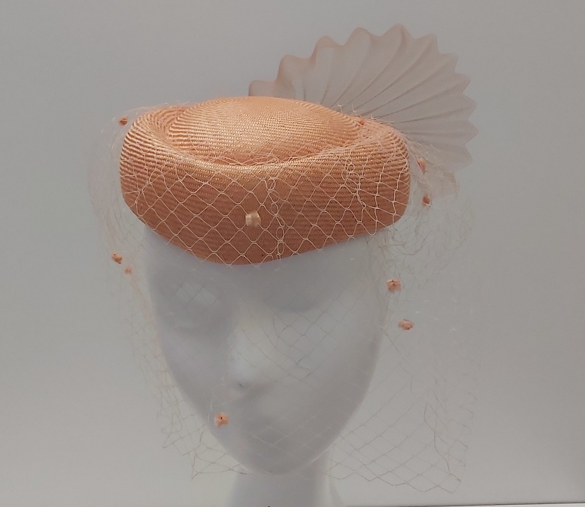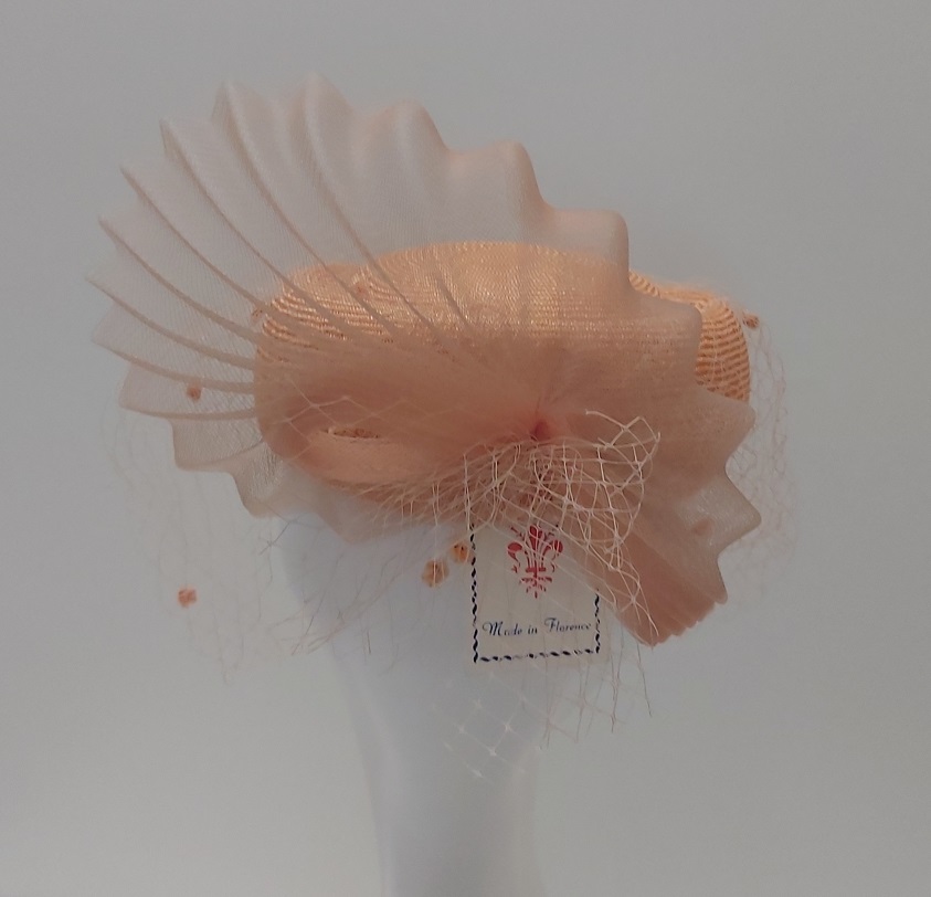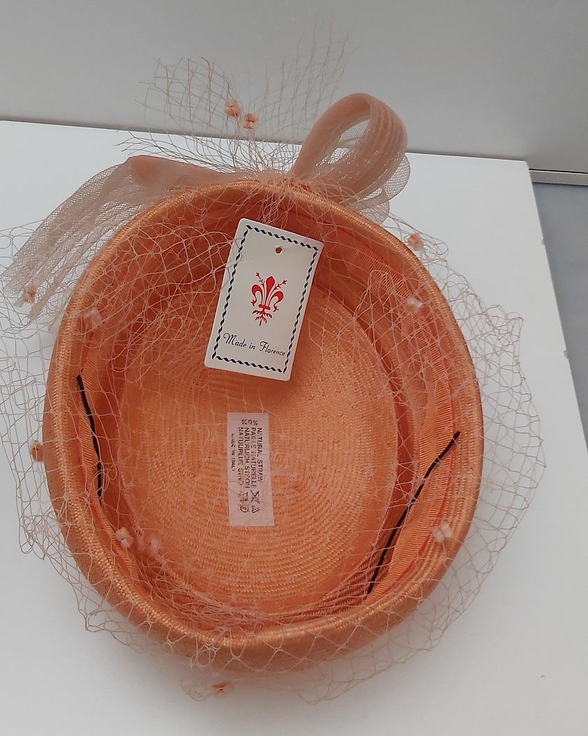 CAPPELLO CERIMONIA BUSTINA CON VELETTA ARANCIO MADE IN ITALY
