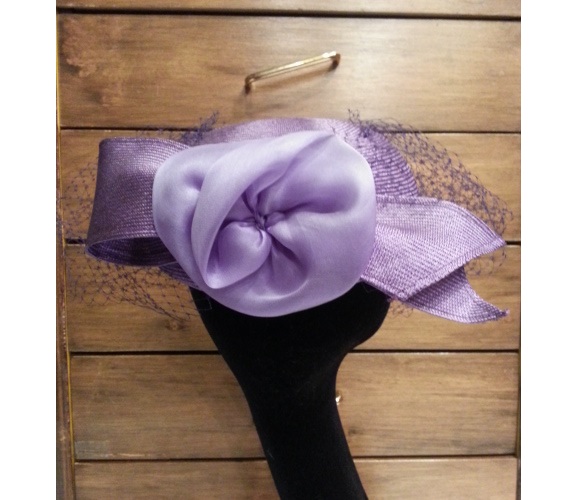 CAPPELLO CERIMONIA BUSTINA CON VELETTA VIOLA MADE IN ITALY