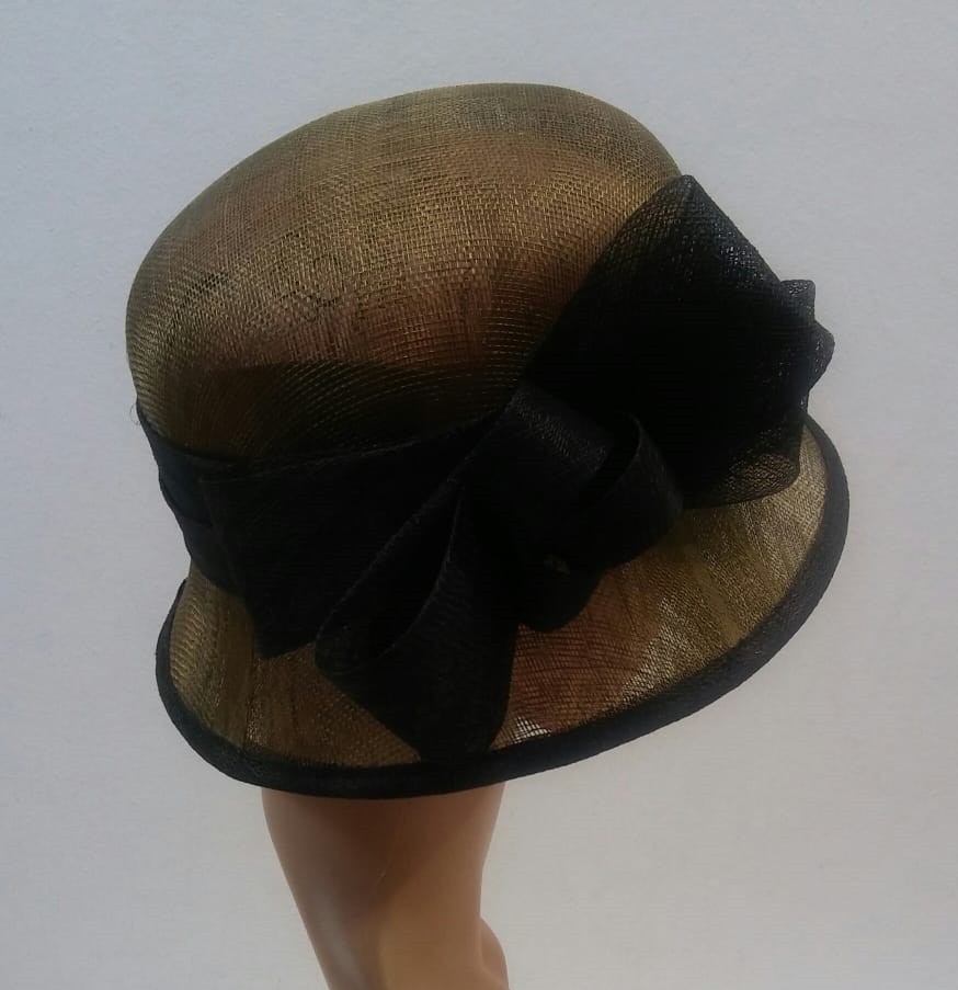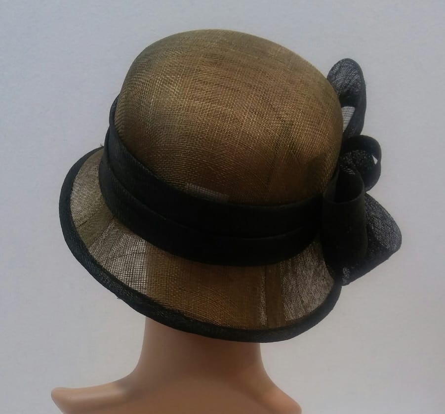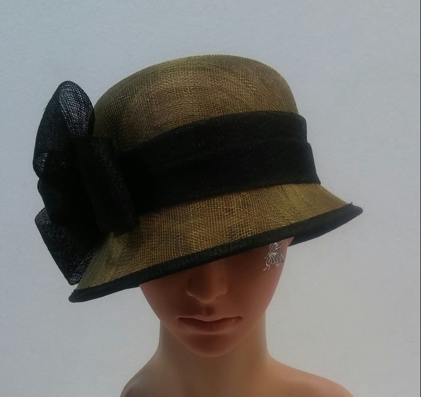 BELLISSIMO CAPPELLO CERIMONIA DONNA CON APPLICAZIONE NERA MODELLO CHARLESTON