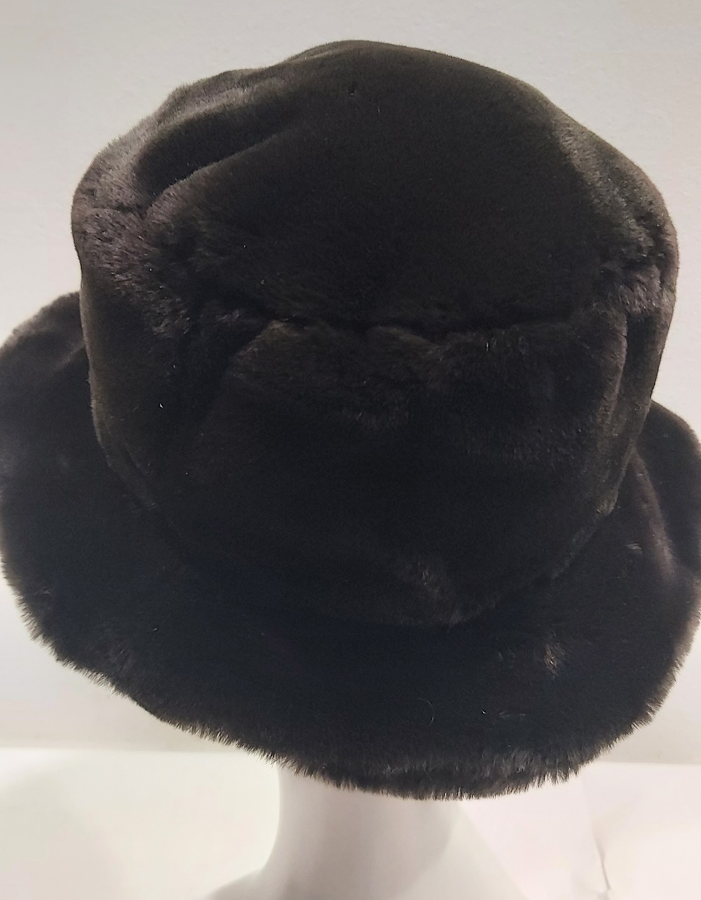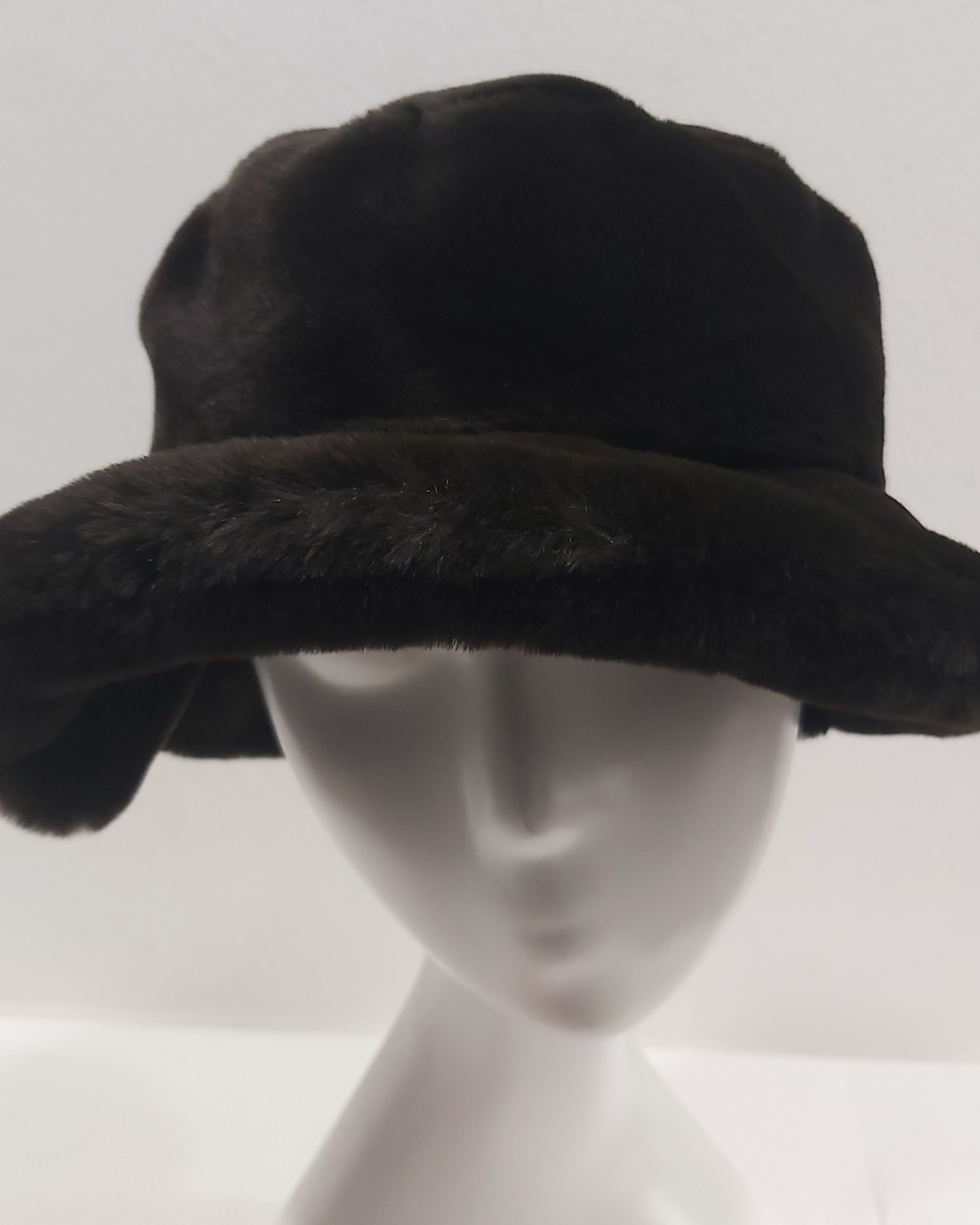 CAPPELLO CLOCHE CON TESA ECOPELLICCIA TESTA MORO MARRONE MADE IN ITALY