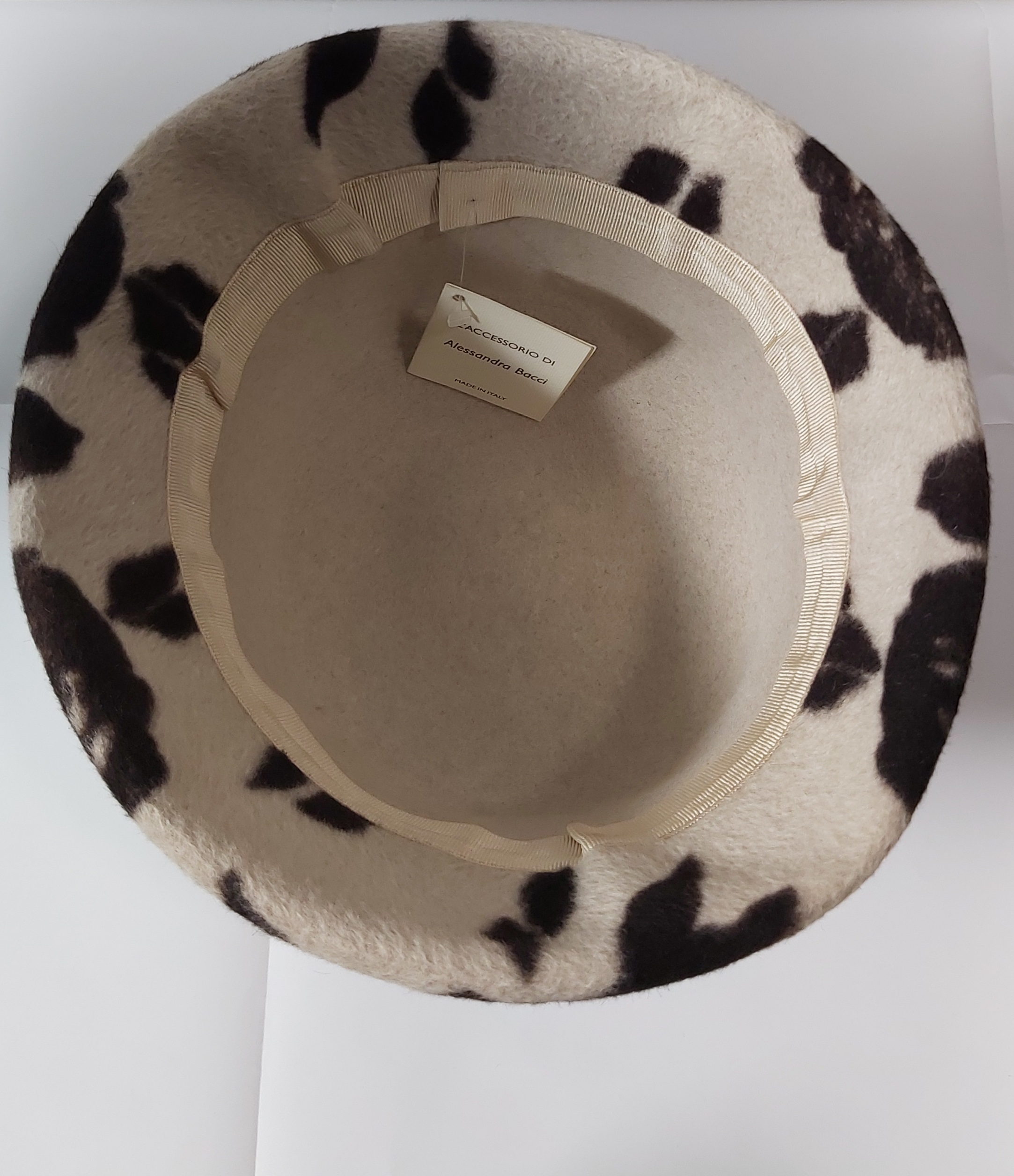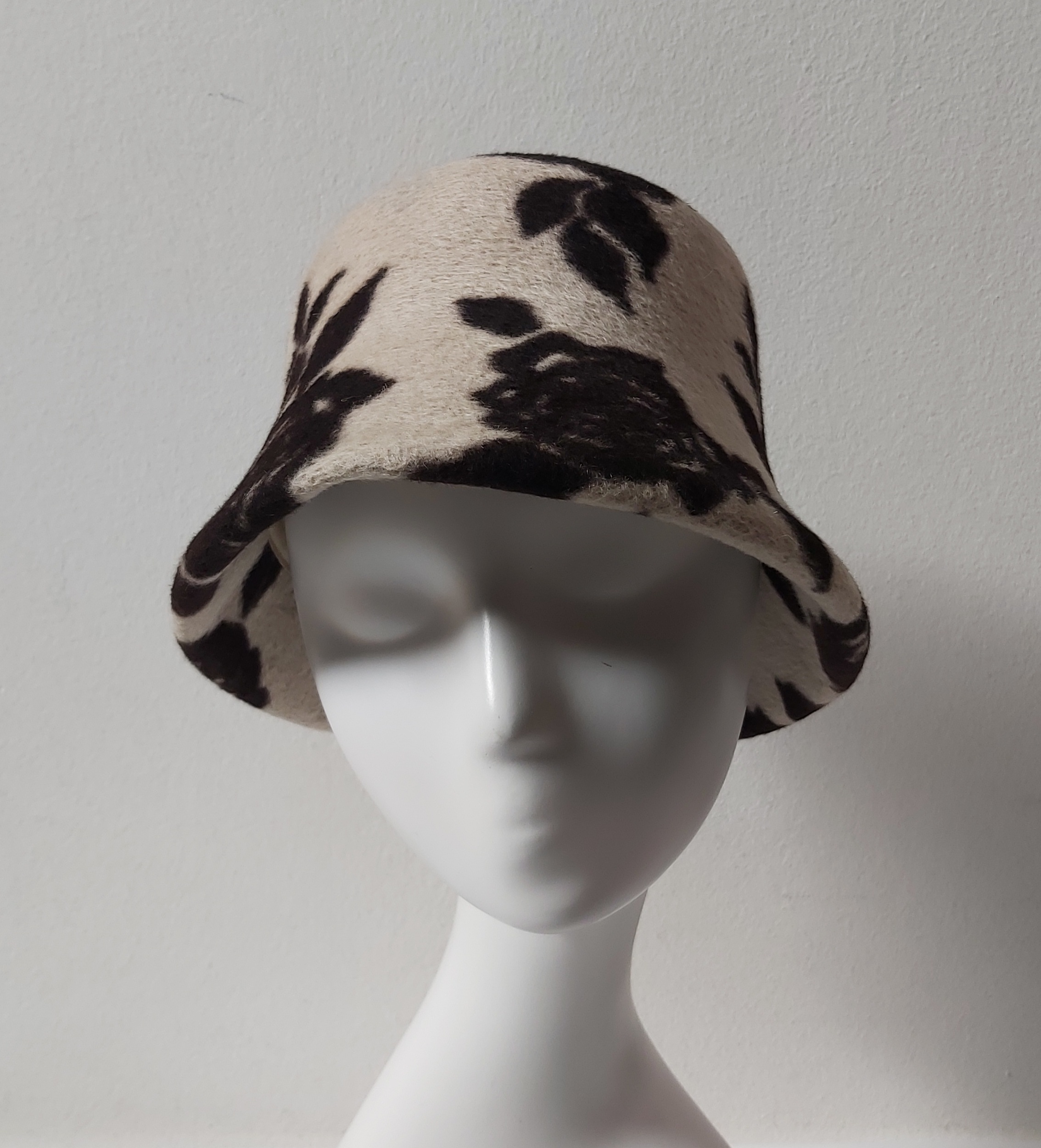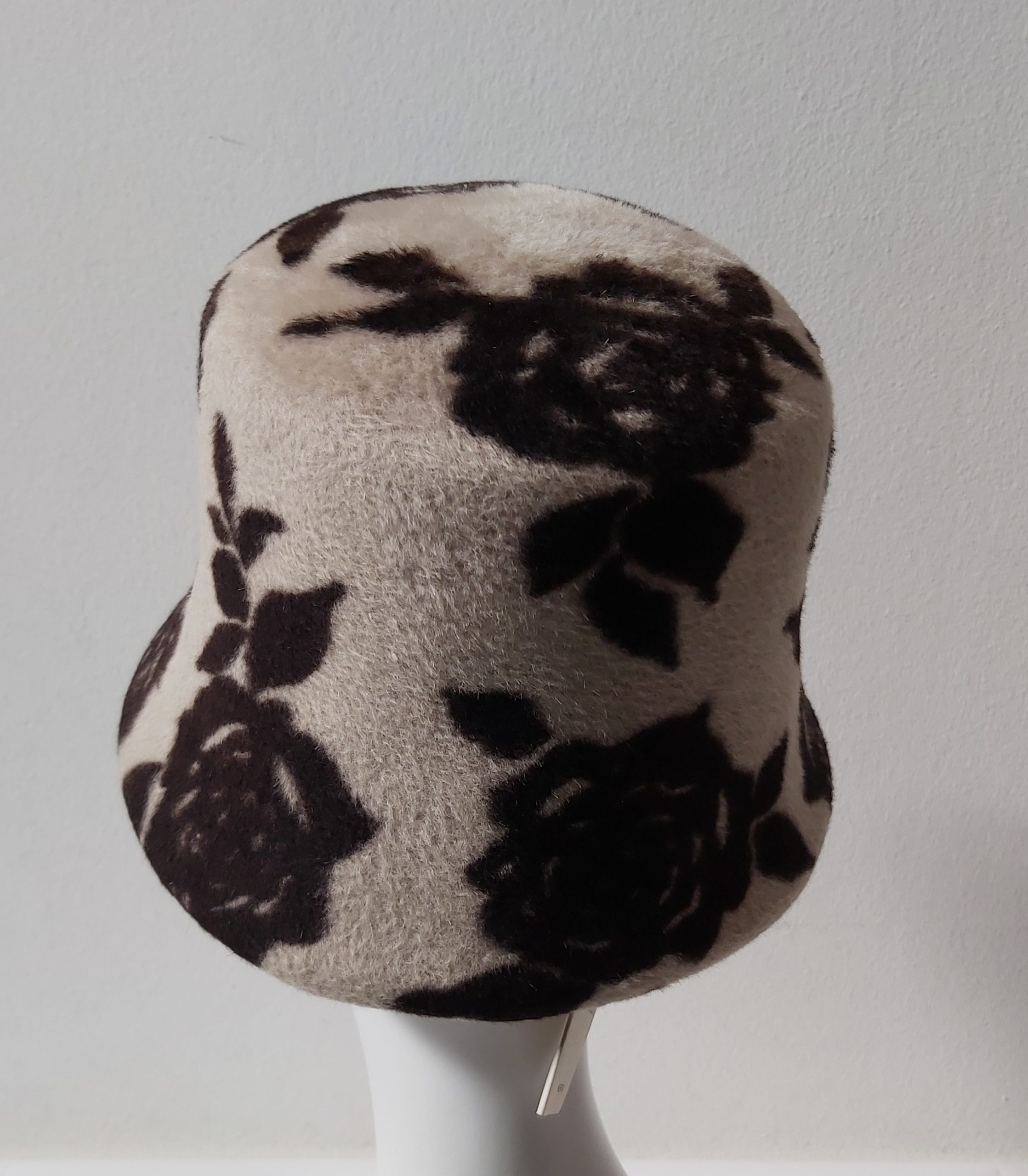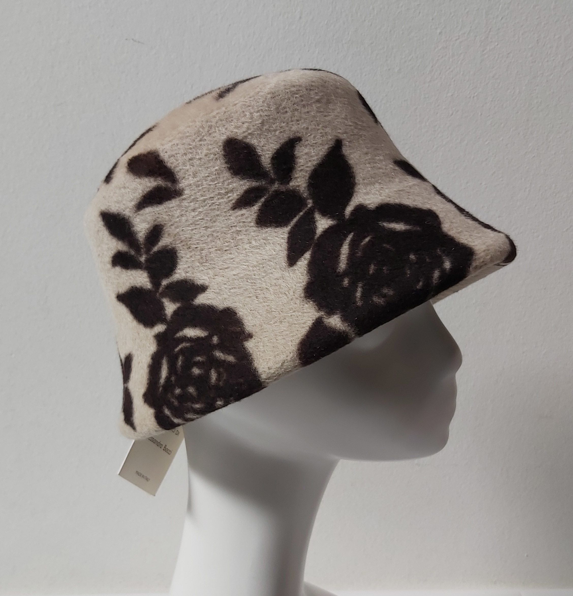 CAPPELLO CLOCHE IN FELTRO LAPIN E LANA MERINOS di ALESSANDRA BACCI FIRENZE COLORE BEIGE CON FIORI MARRONE COME FOTO TAGLIA UNICA MADE IN ITALY