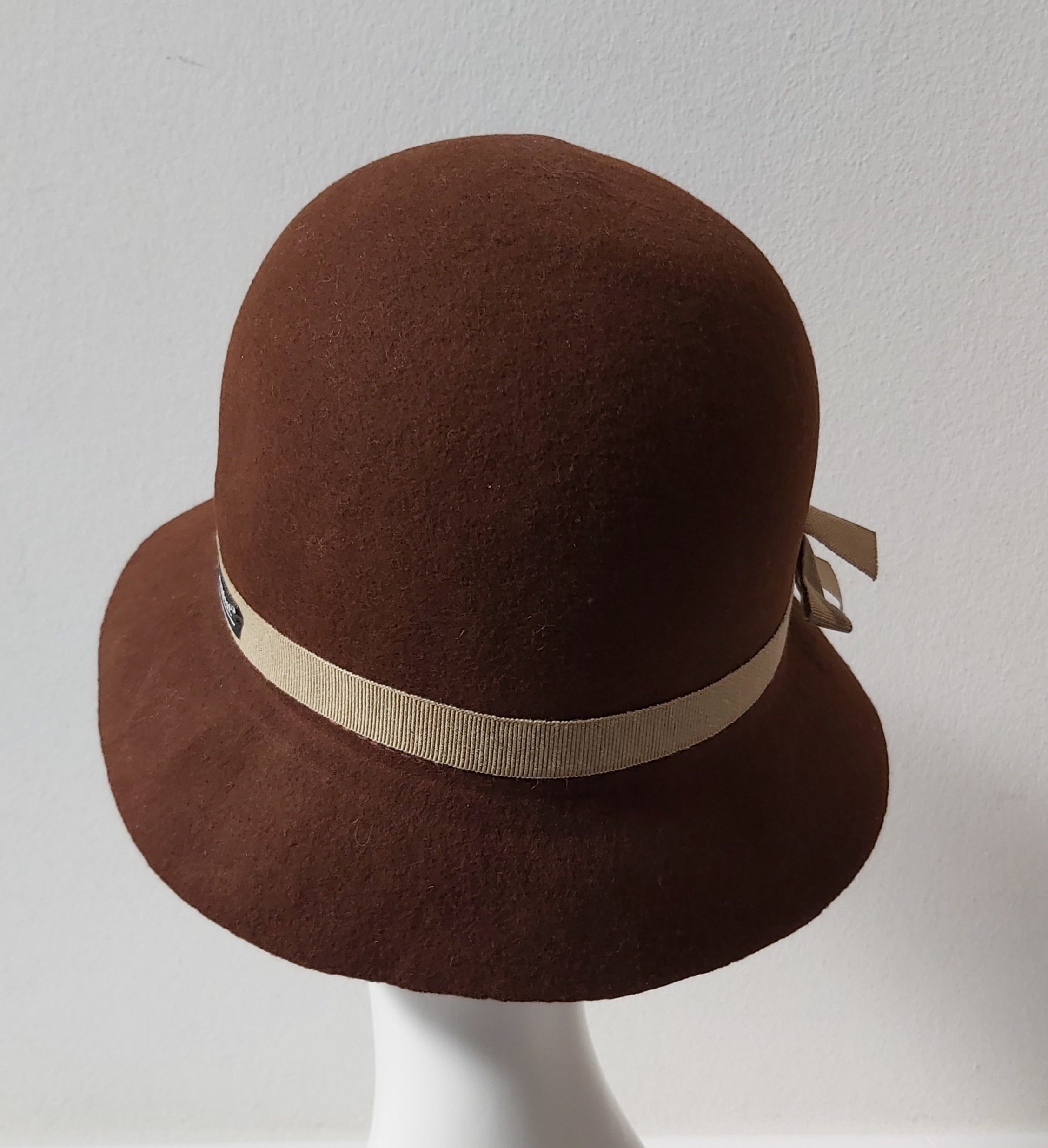 CAPPELLO CLOCHE IN FELTRO CON NASTRO A CONTRASTO ARROTOLABILE COME FOTO 100% LANA ALAย 4/5 CM TAGLIA UNICA REGOLABILE COL NASTRO MADE IN ITALY