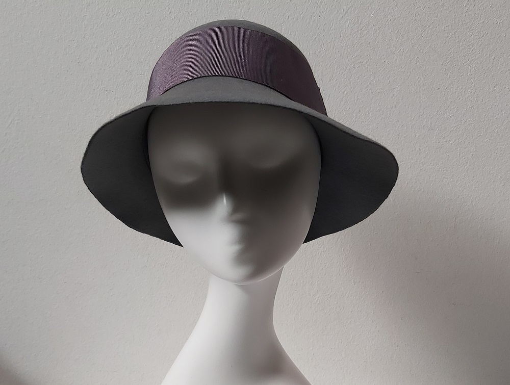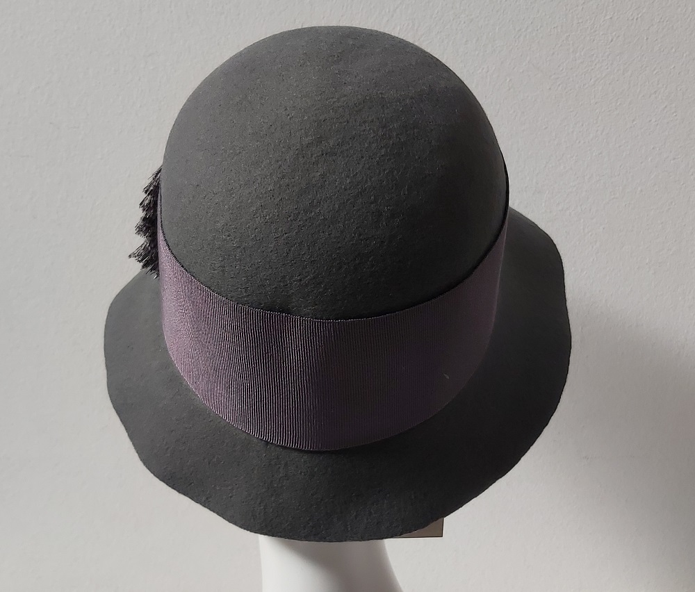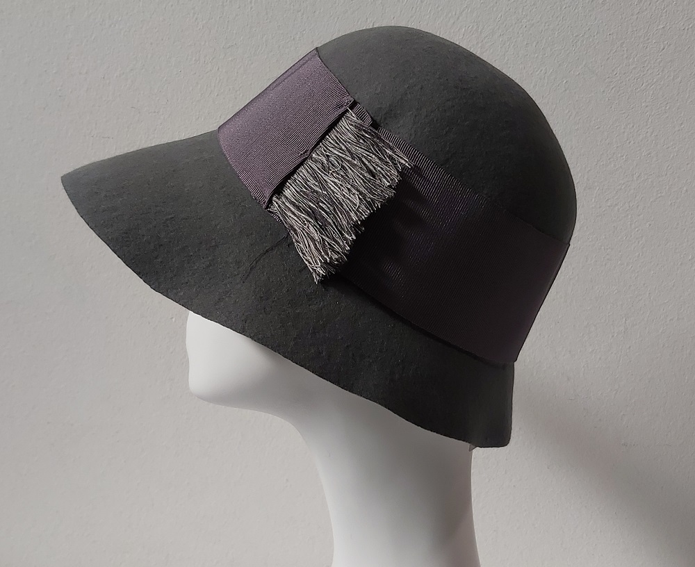 CAPPELLO CLOCHE IN FELTROย 100% LANA CON NASTRO COME FOTO