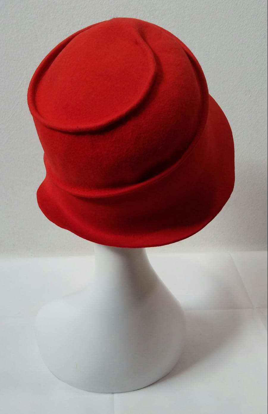 CAPPELLO CLOCHE IN FELTRO LANA ROSSO MADE IN ITALY MISURA LARGE L 59/60