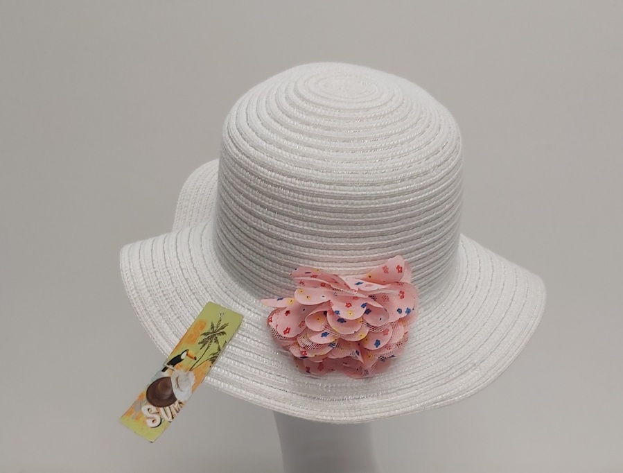 CAPPELLO DA SOLE BIANCO TESA LARGA DA BAMBINA CON FIORE ROSA COME FOTO