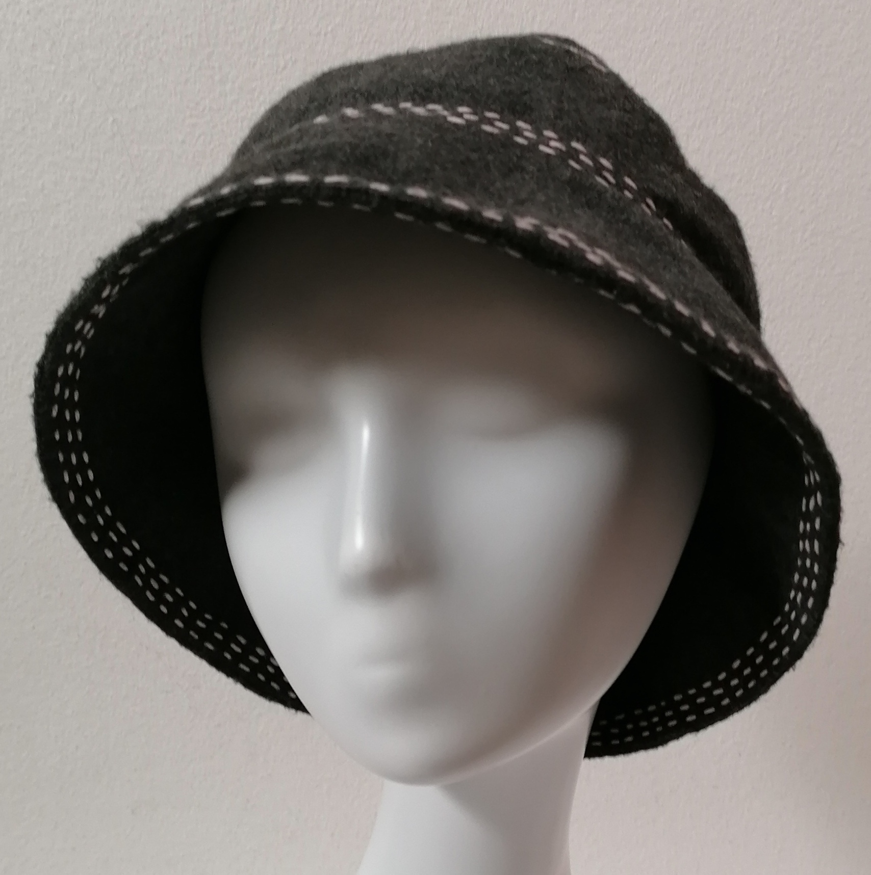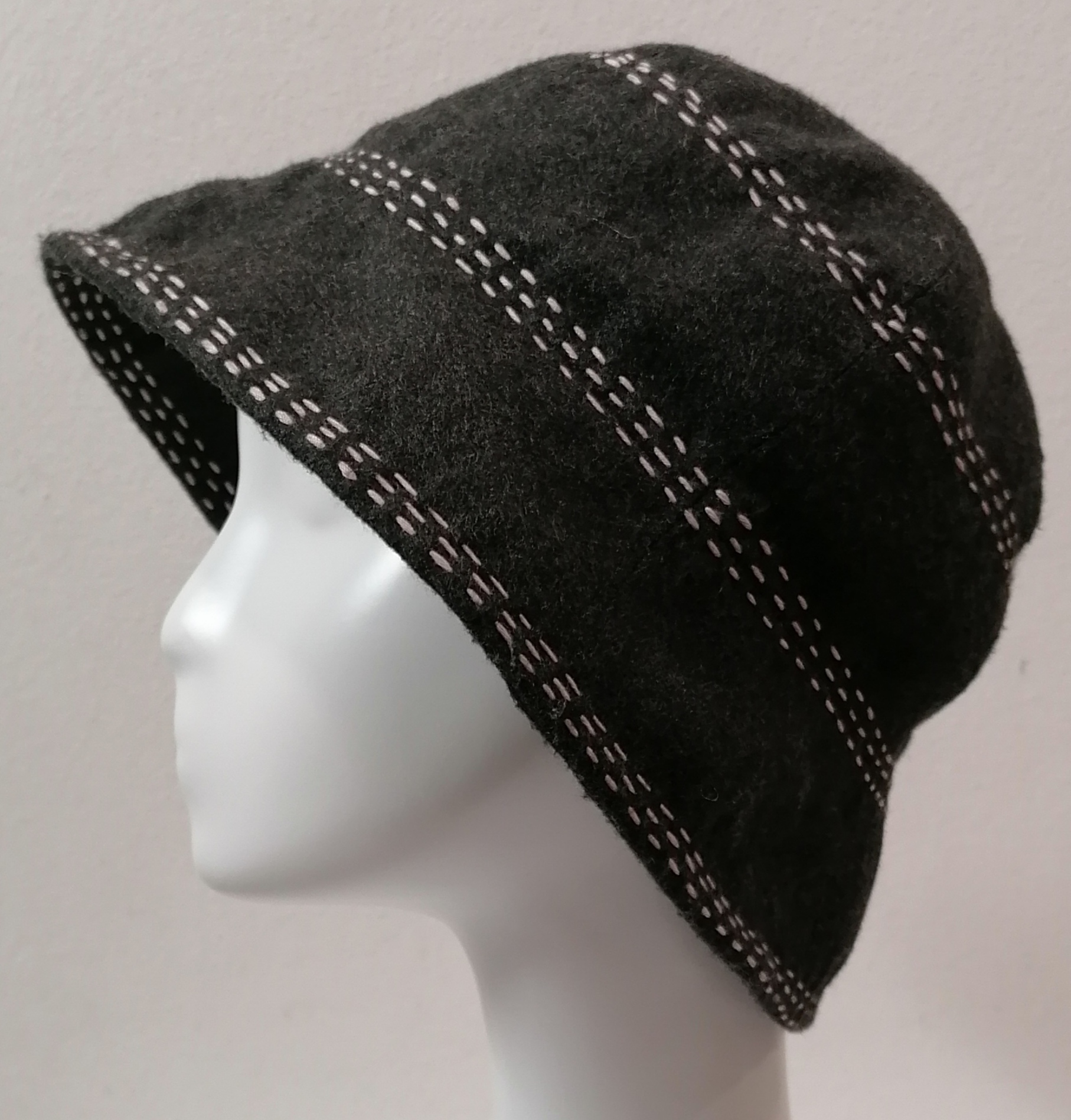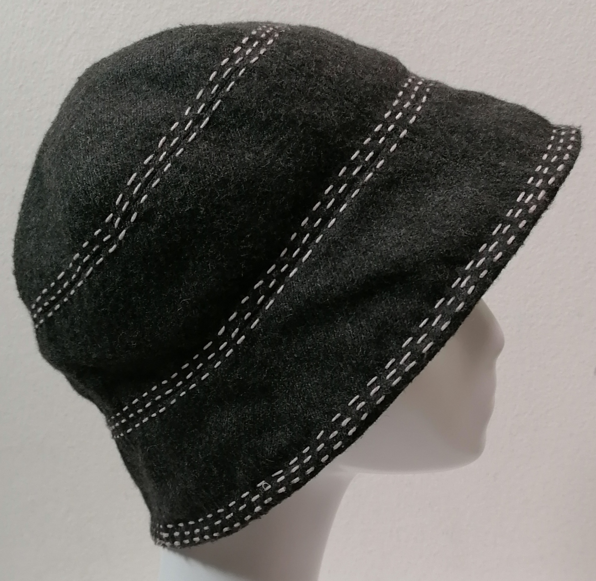 CAPPELLO DONNA CLOCHE BORSALINETTE BY BORSALINO GRIGIO CON IMPUNTURE COLORE COME FOTO