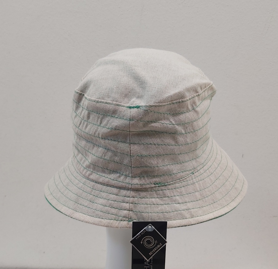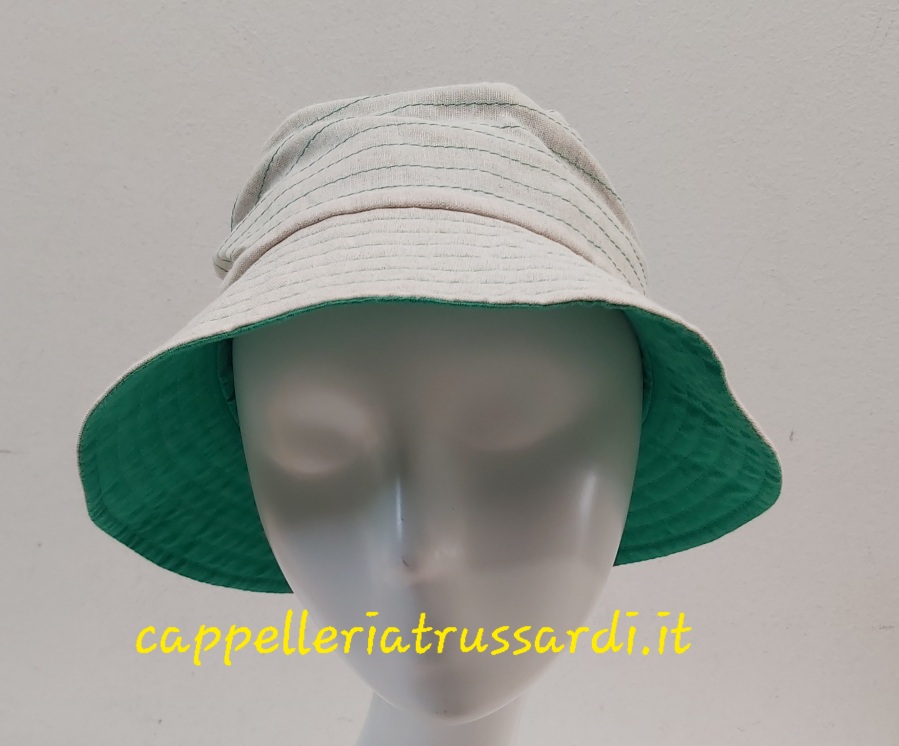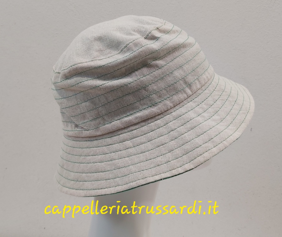 CAPPELLO DONNA CLOCHE ESTIVO BEIGE REVERSIBILE VERDE LINO COTONE MADE IN ITALY