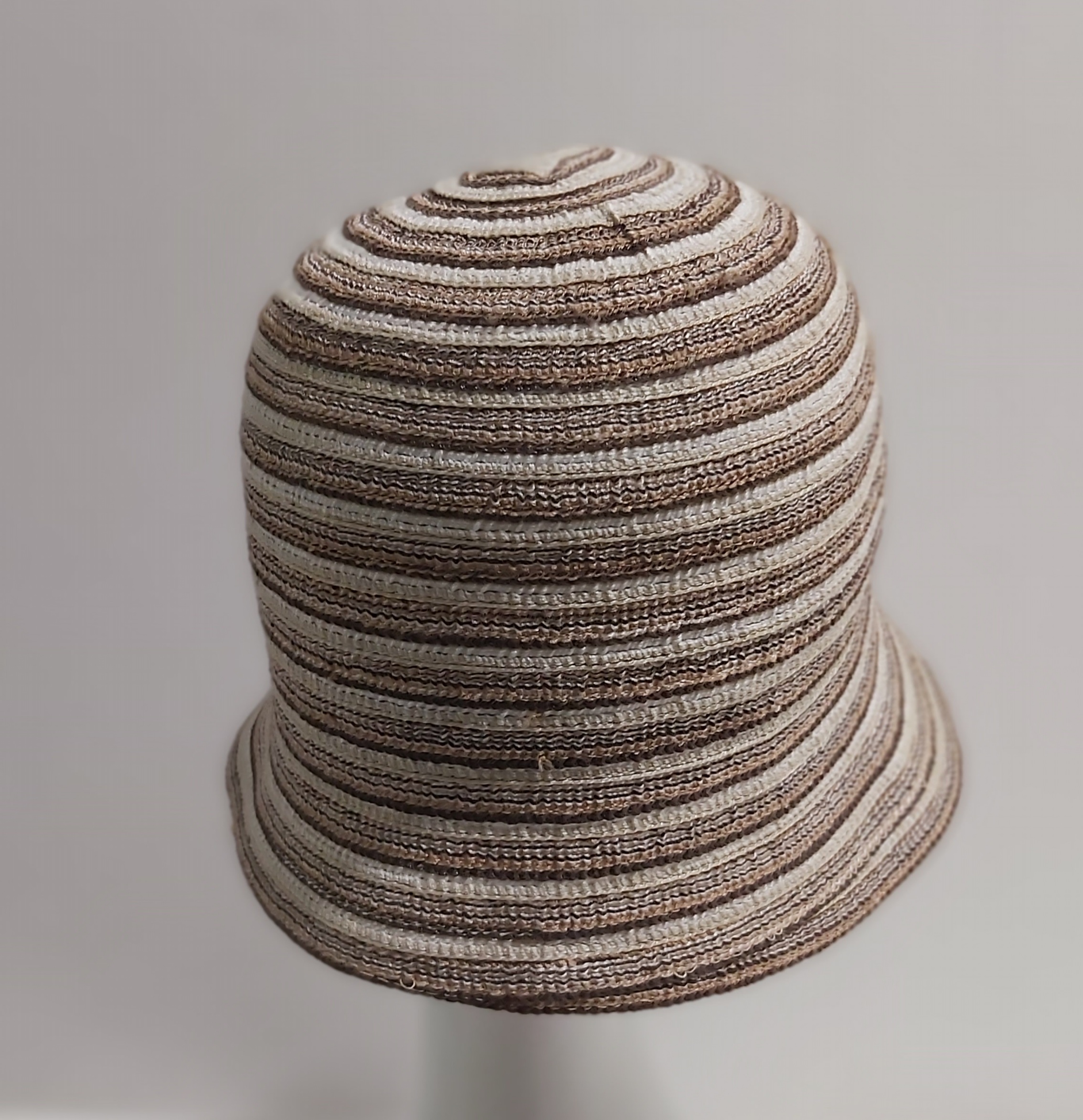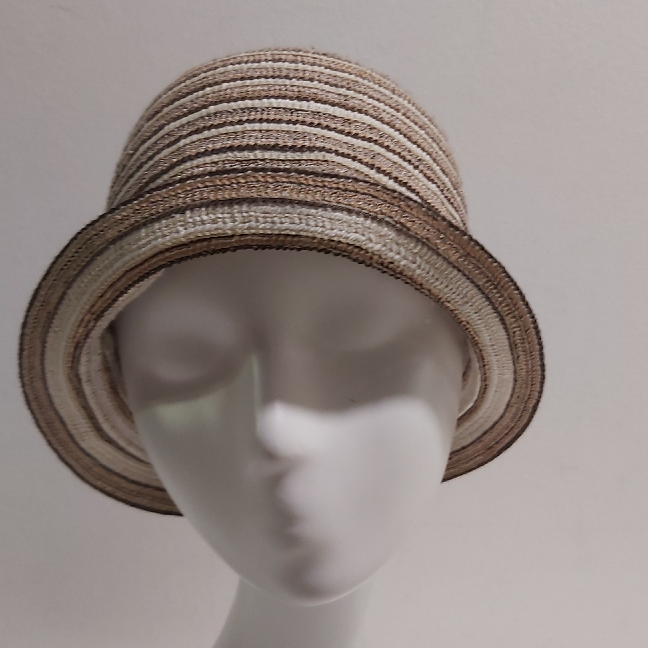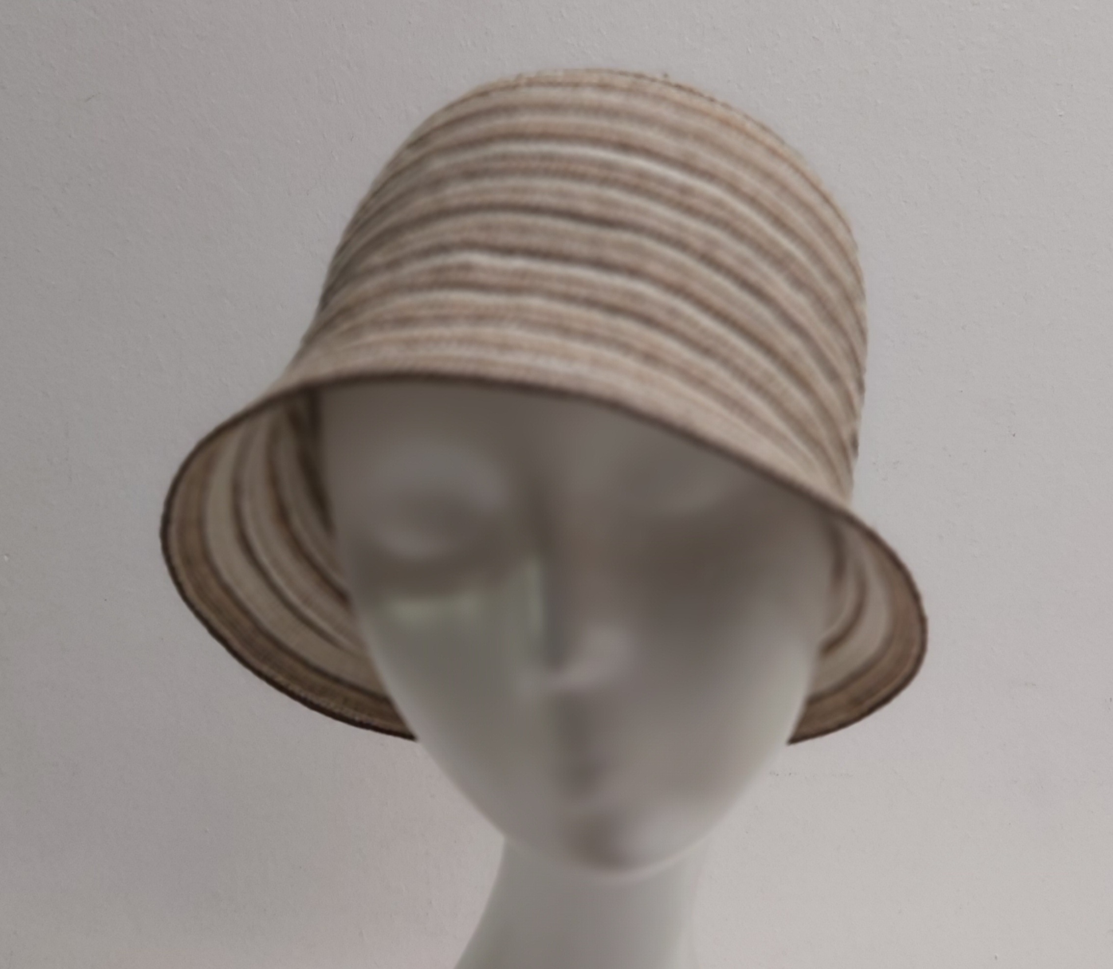 CAPPELLO DONNA CLOCHE PAGLIA RIGHE BEIGE MADE IN ITALY