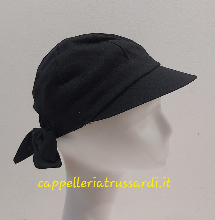CAPPELLO DONNA ESTIVO VISIERA LINO COTONE NERO