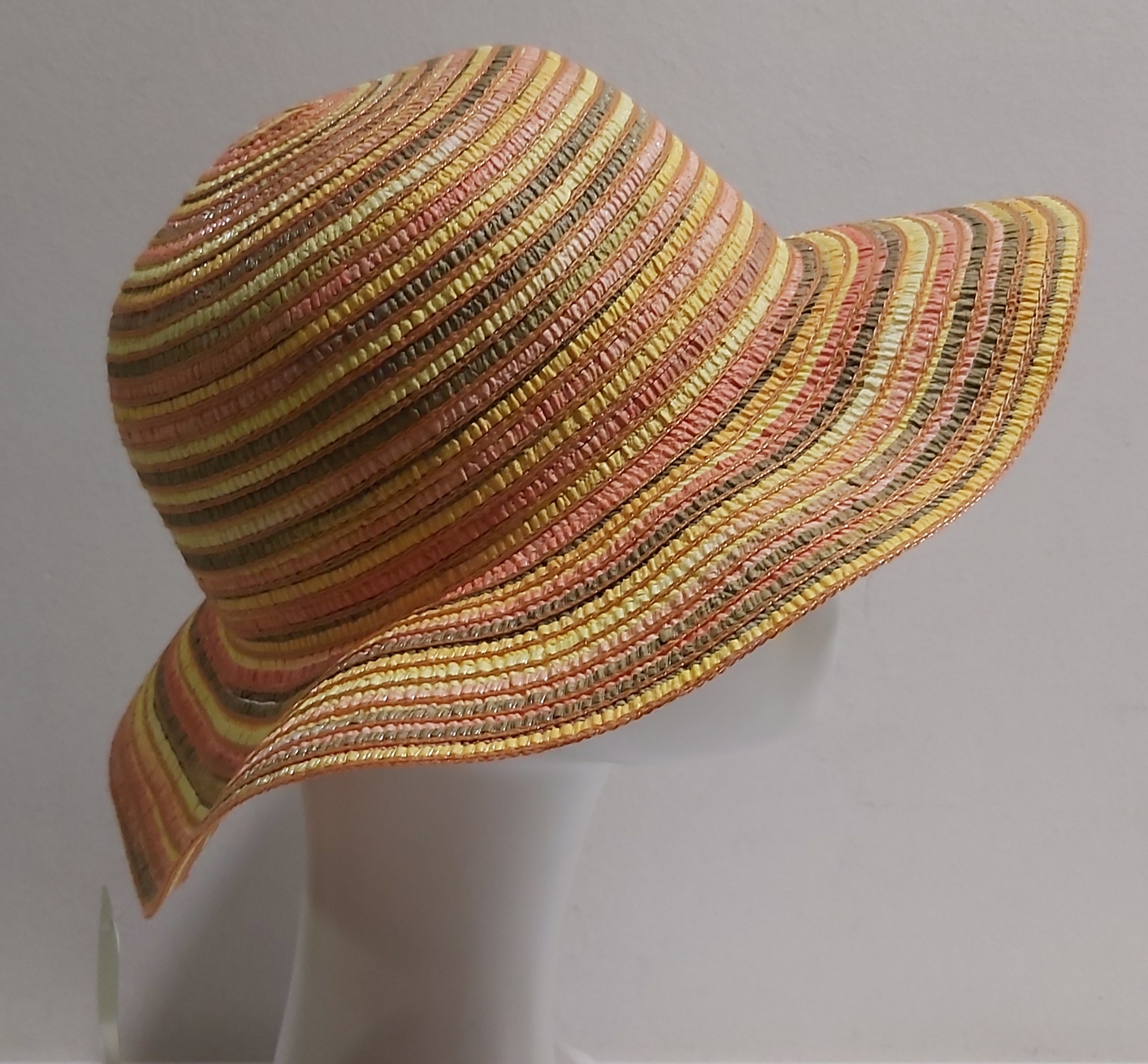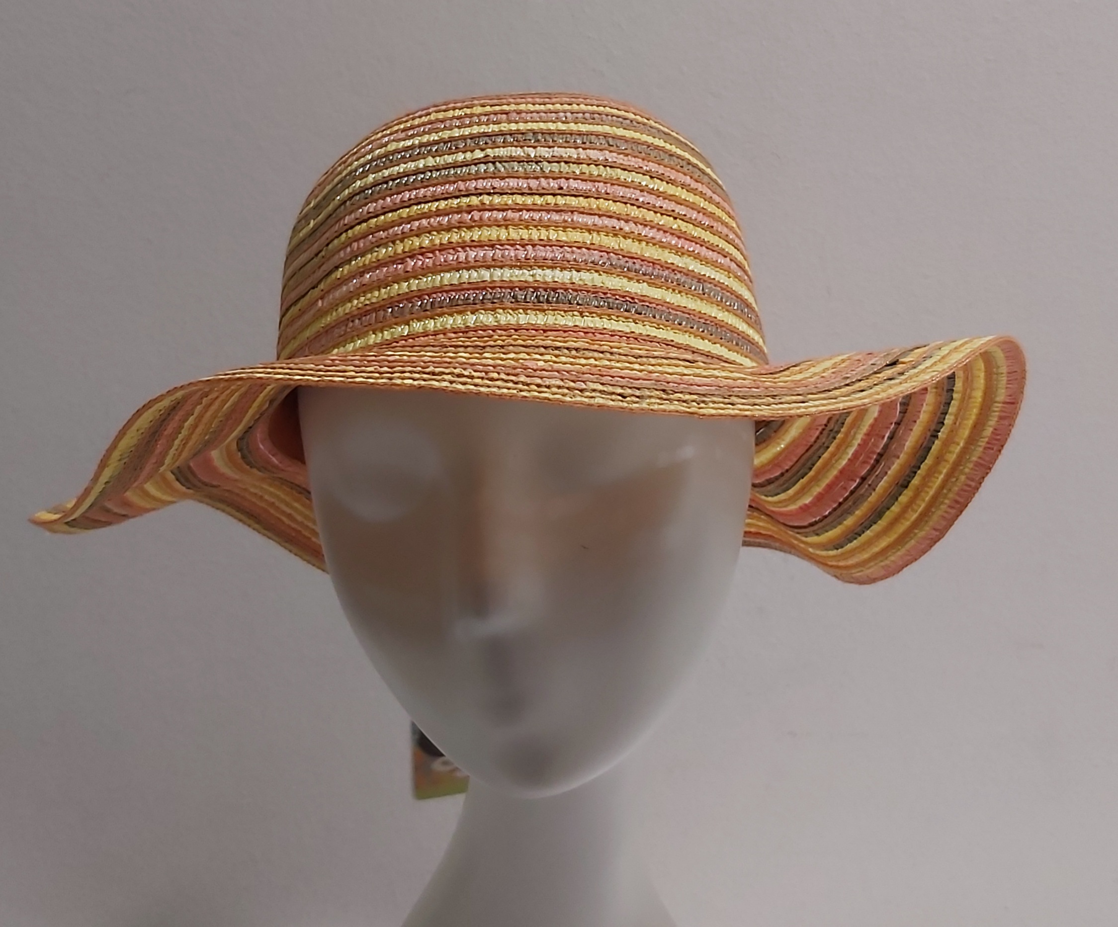 CAPPELLO DONNA PAGLIA RIGHE ARANCIO TESA MEDIA