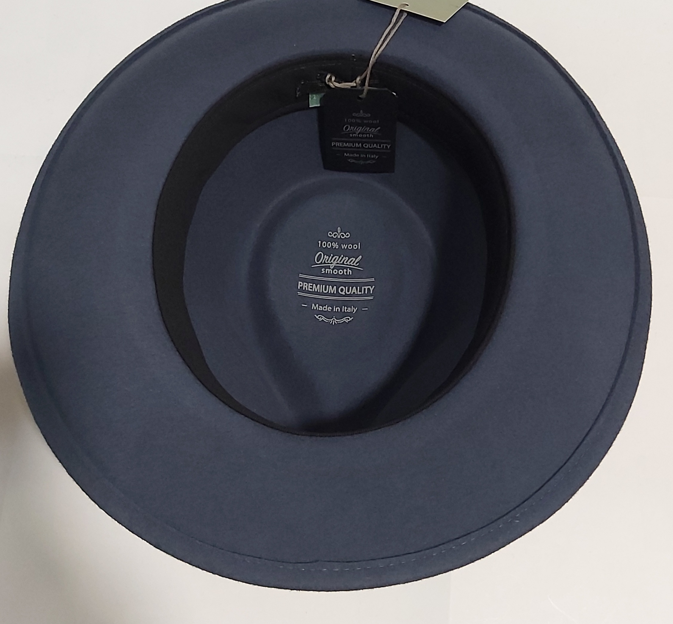 CAPPELLO FEDORA FELTRO LANA BLU DENIM Made in Italy