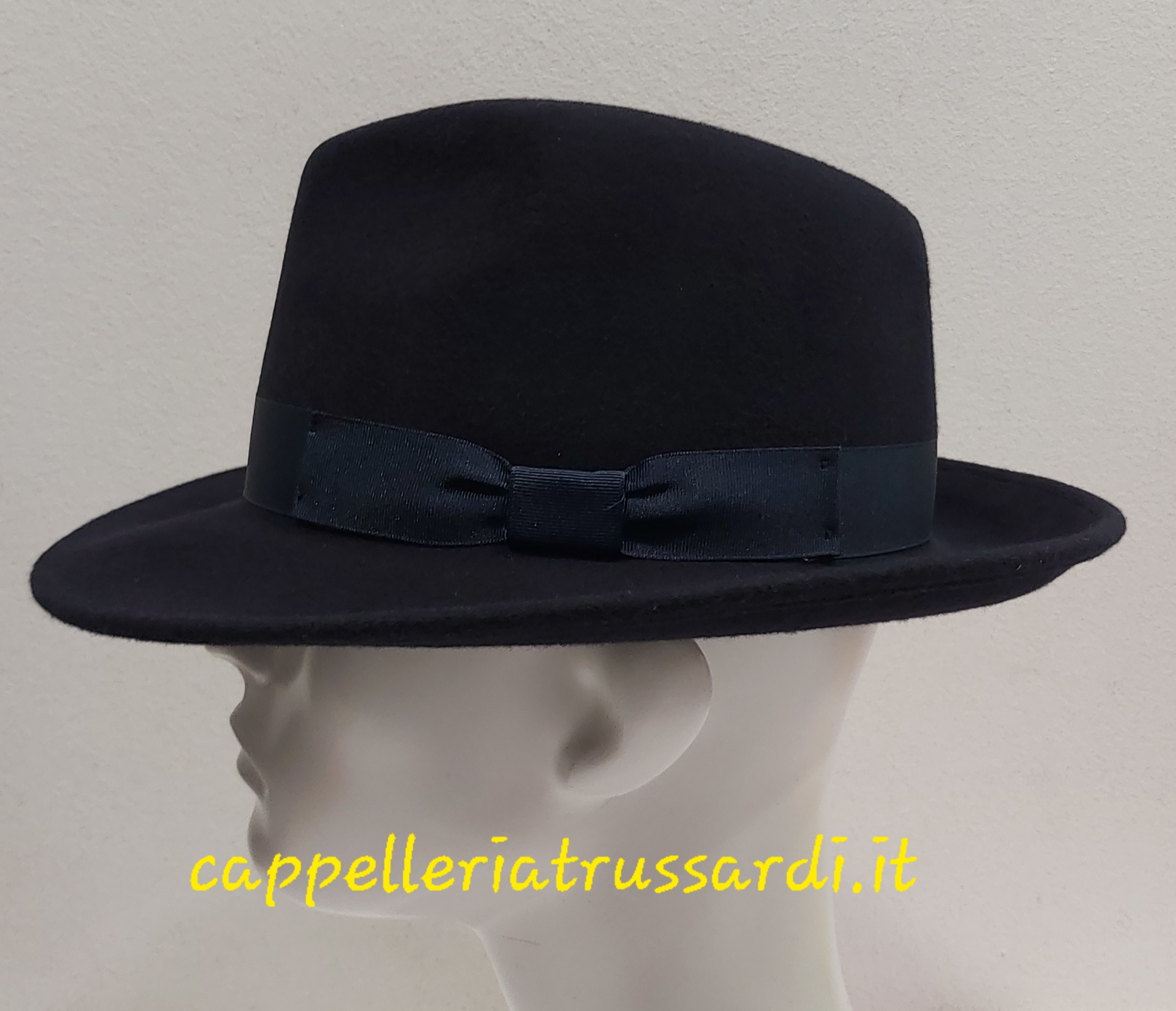 CAPPELLO FELTRO LANA FEDORA BLU TESA LARGA MADE IN ITALY