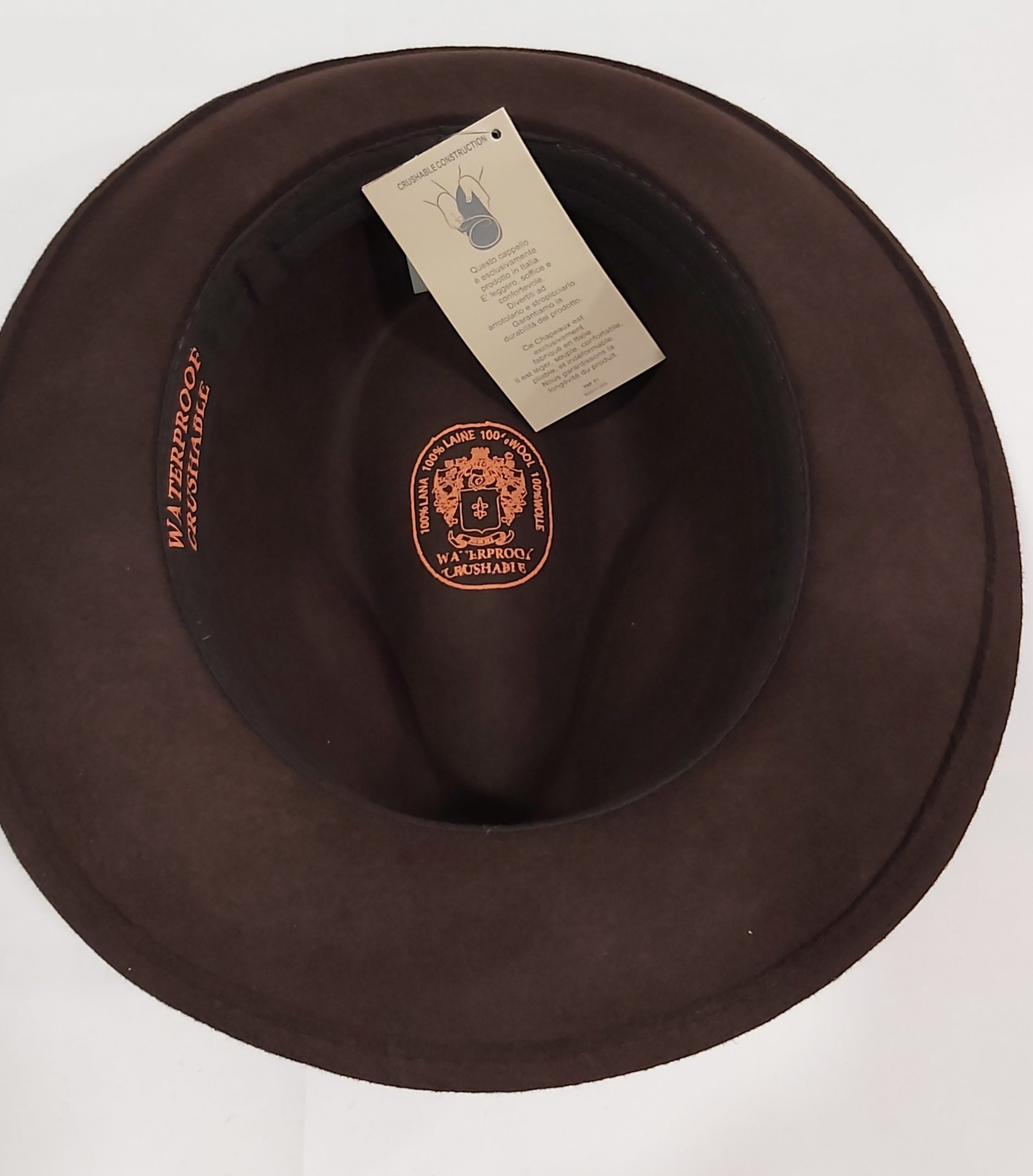 CAPPELLO FELTRO LANA FEDORA MARRONE TESA MEDIA MADE IN ITALY