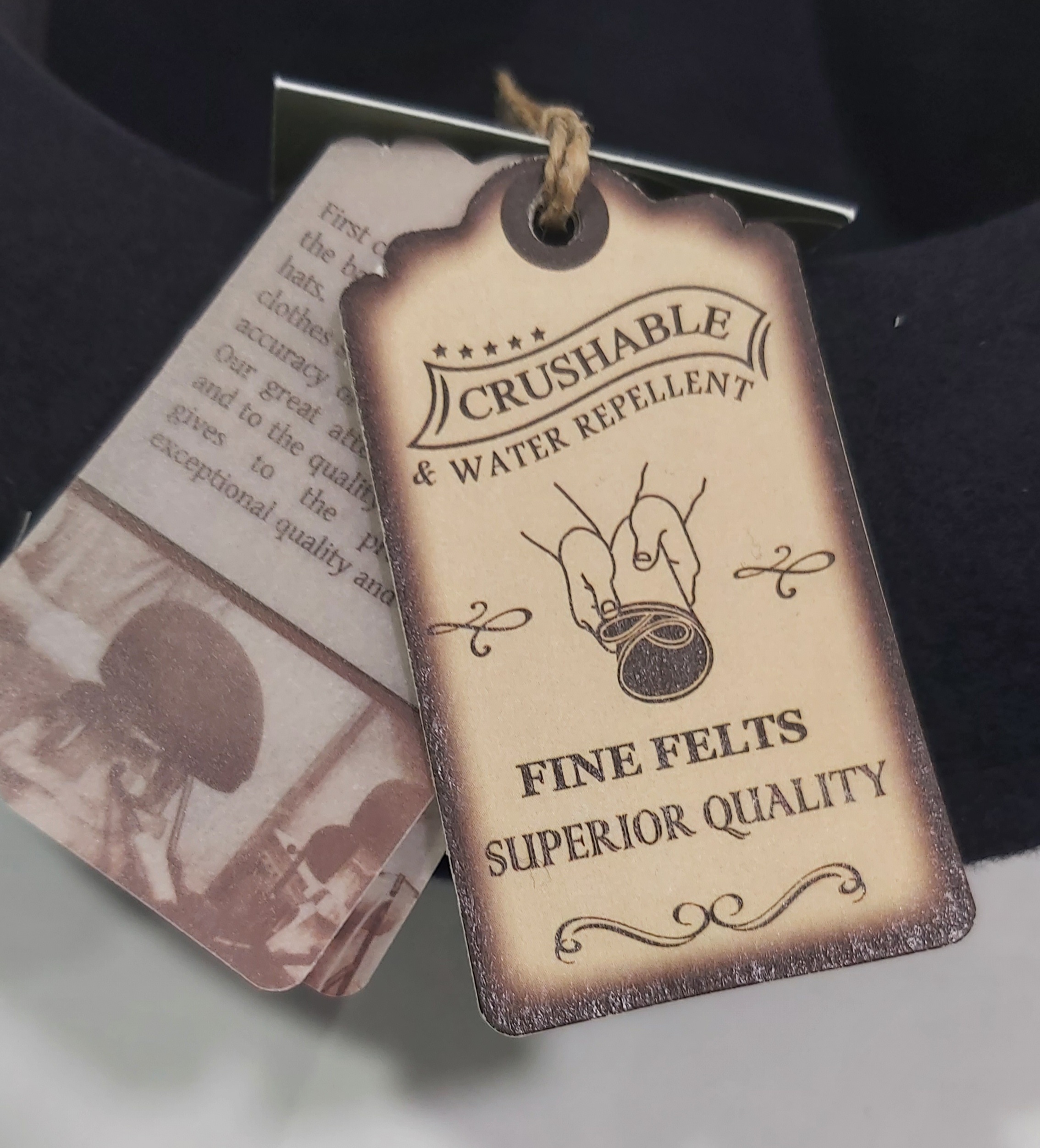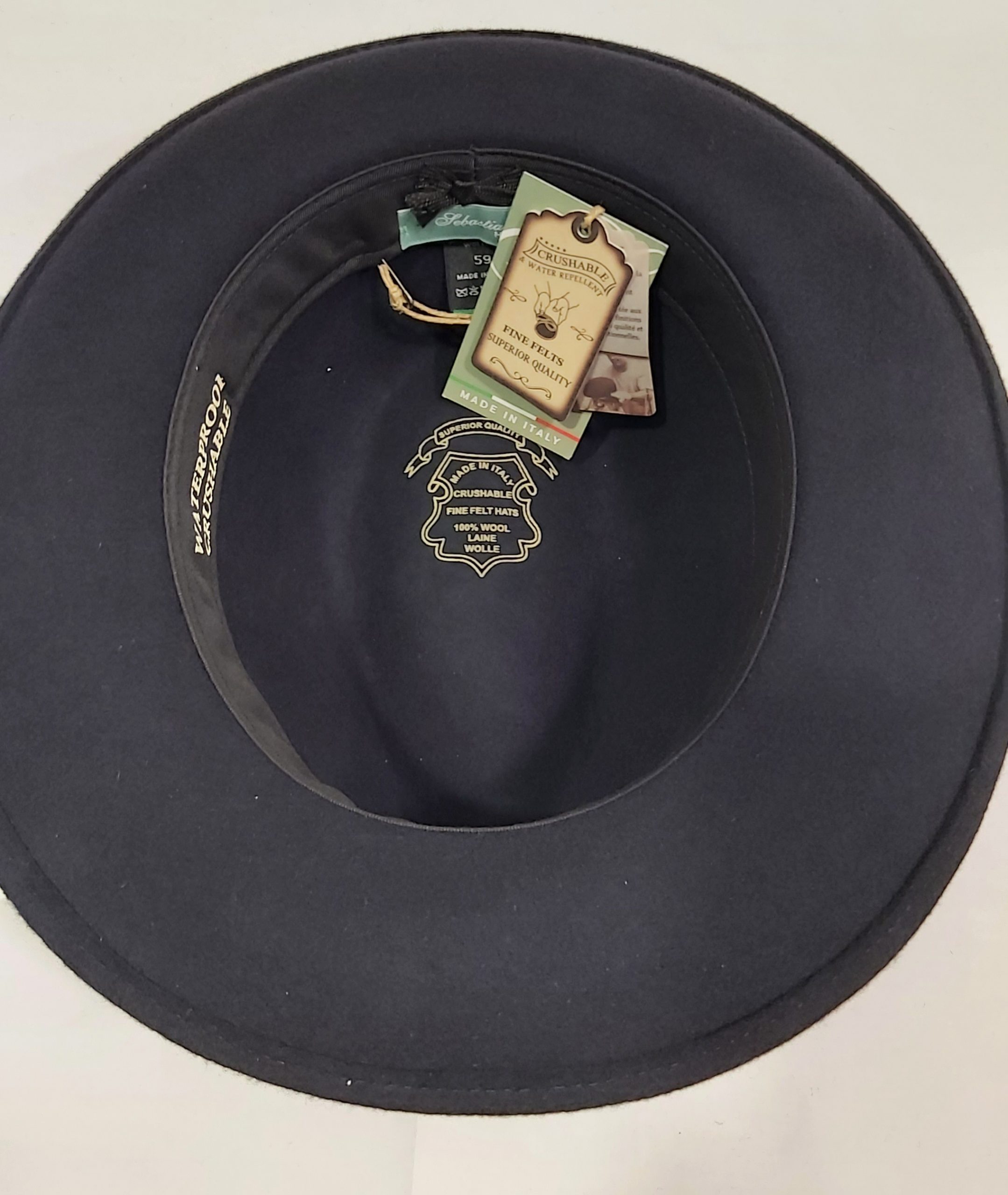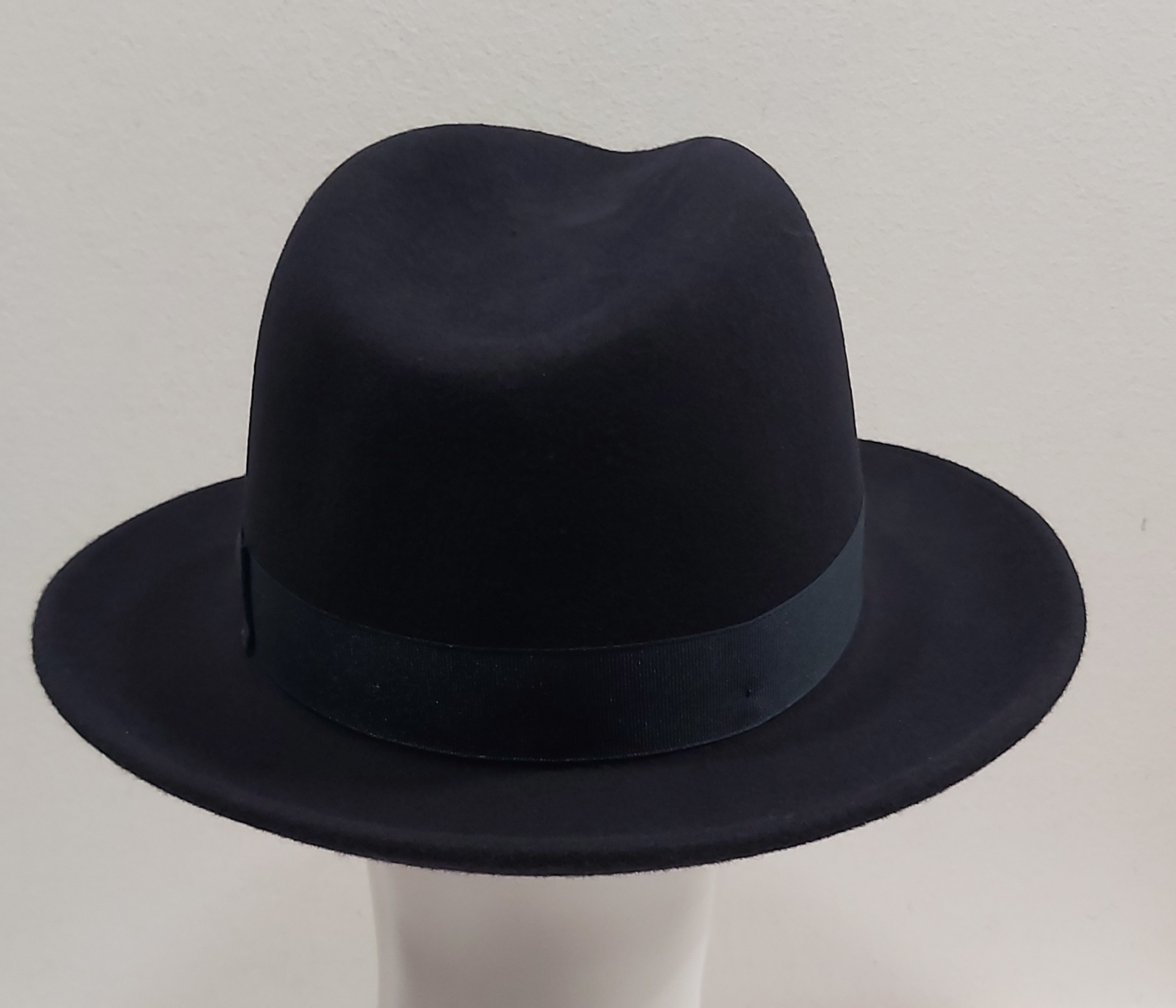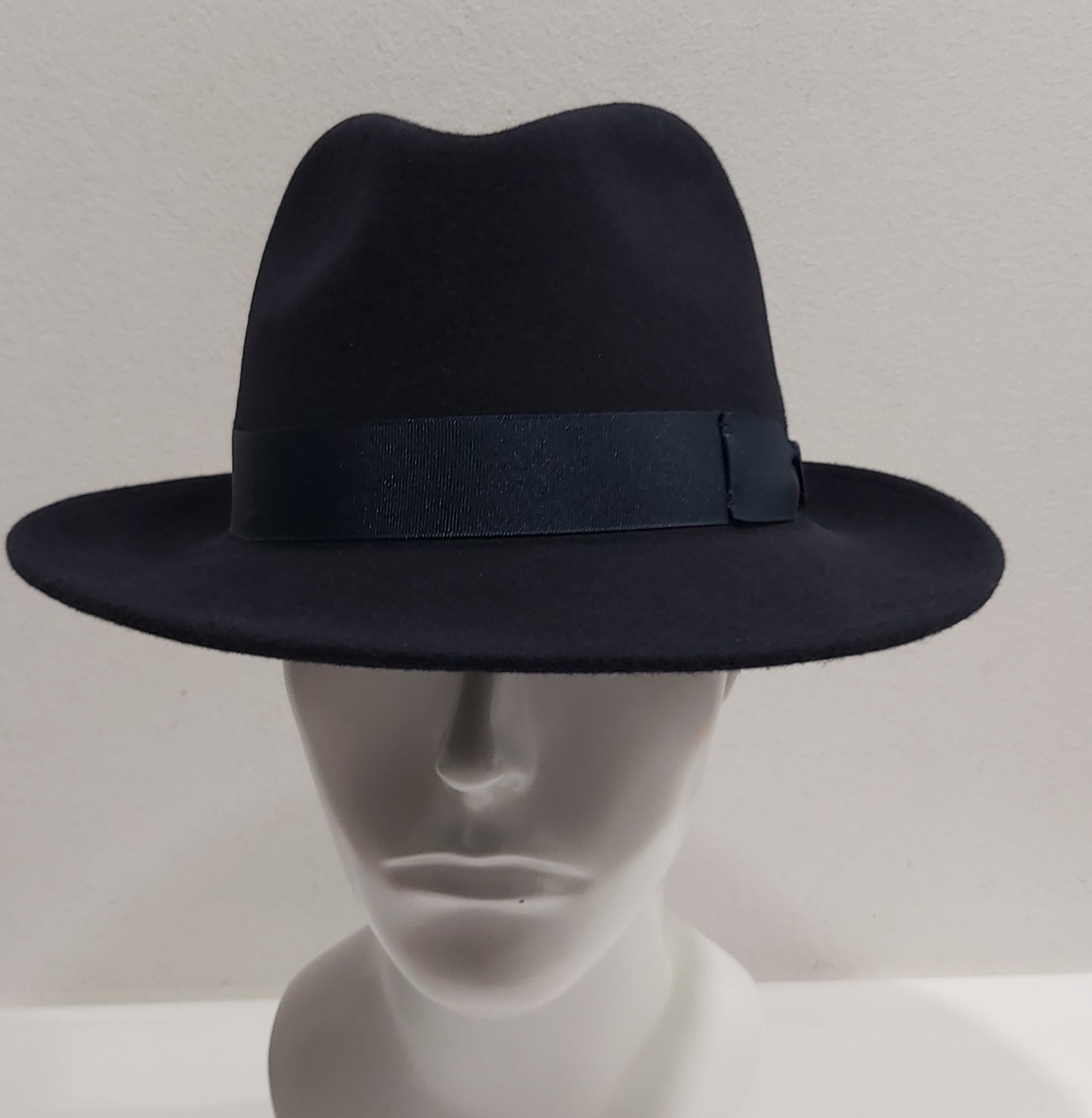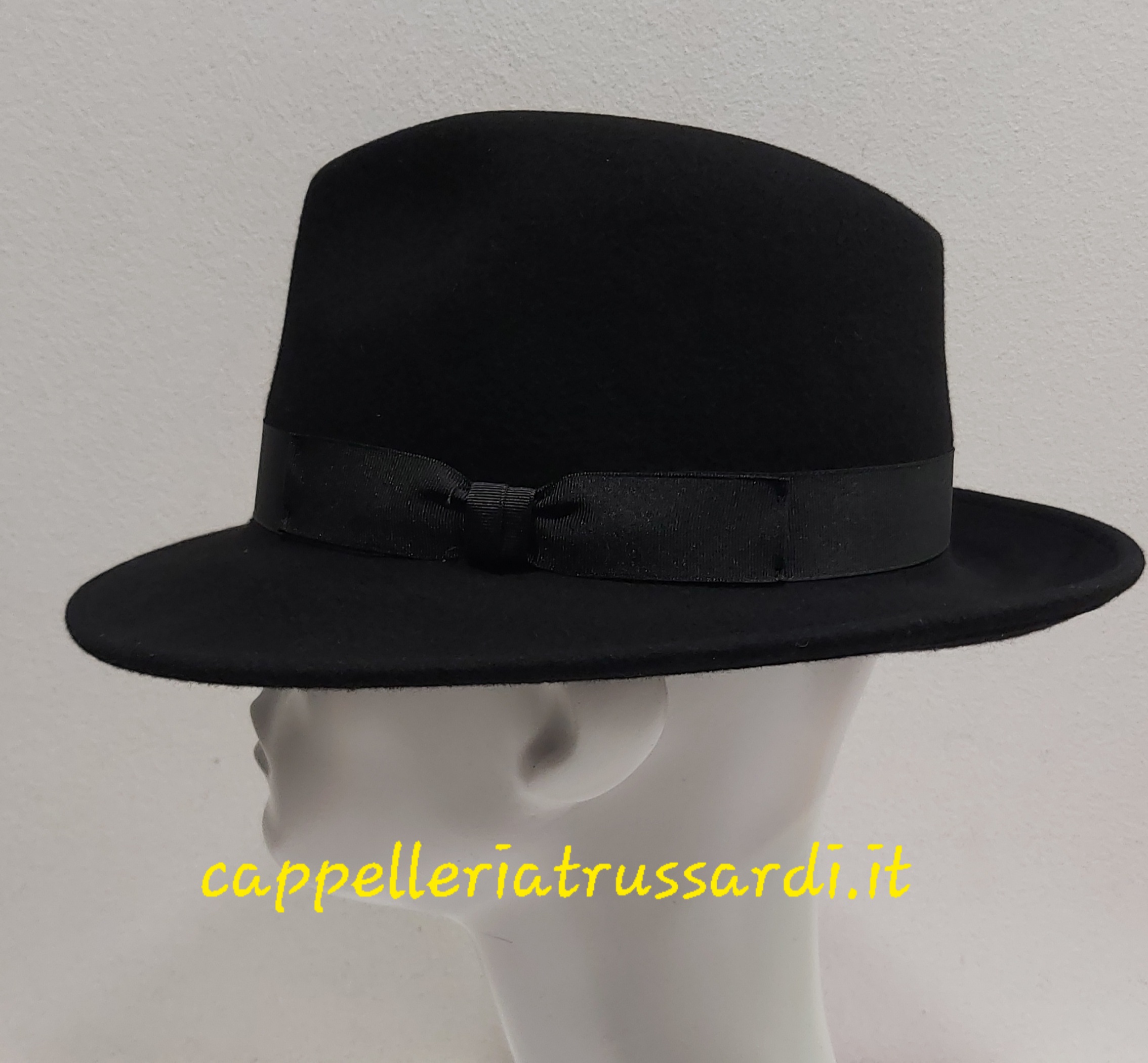 CAPPELLO FELTRO LANA FEDORA NERO TESA LARGA MADE IN ITALY