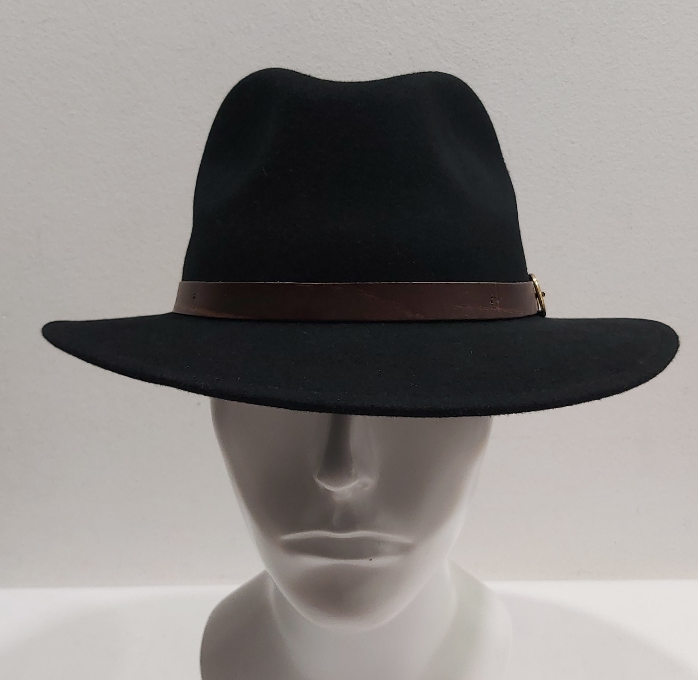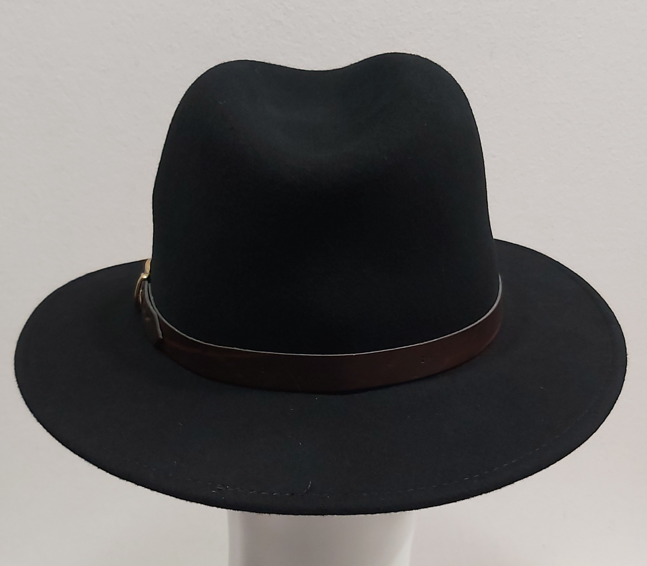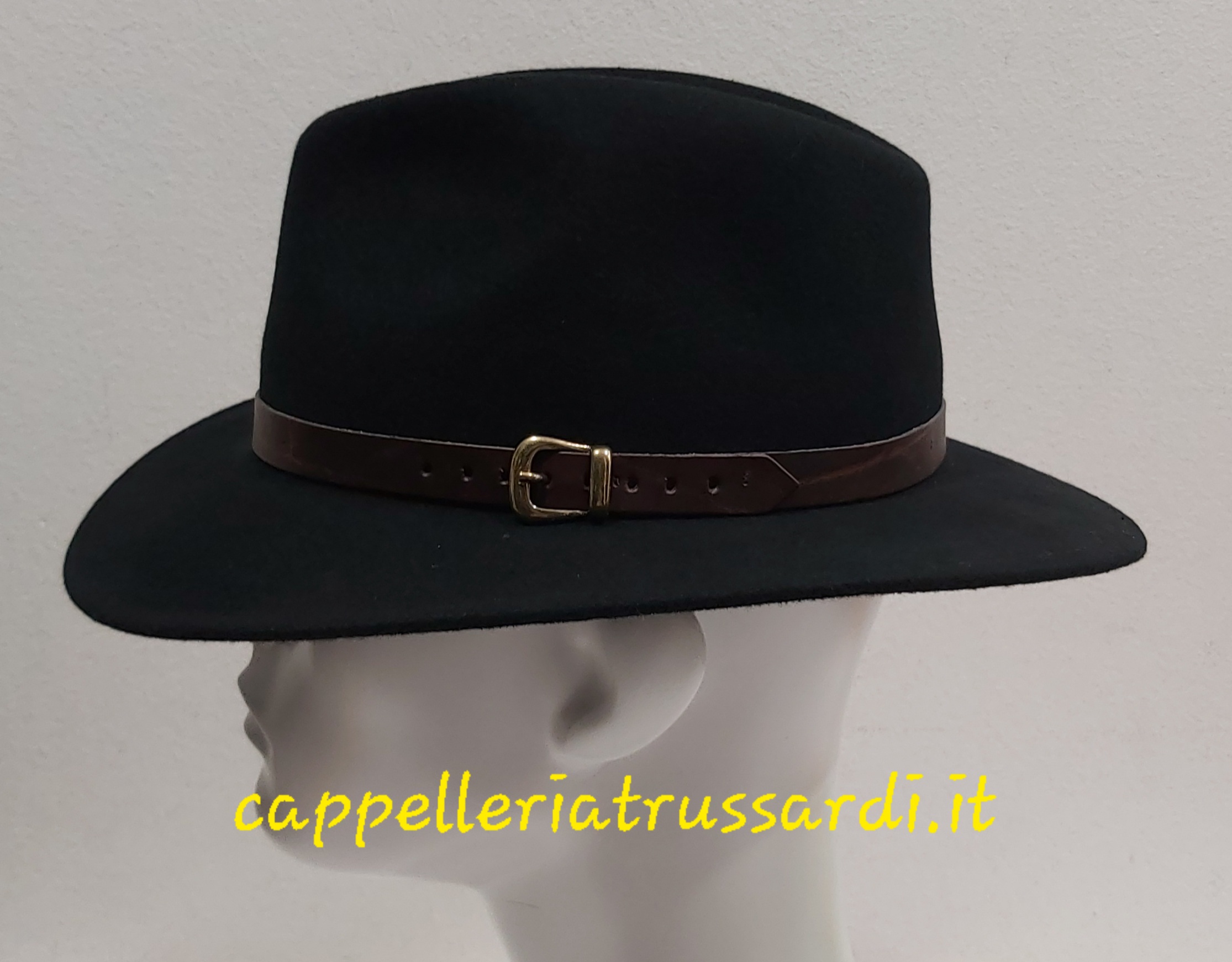 CAPPELLO INDIANA JONES CASUAL FELTRO LANA NERO CINTURINO Made in Italy