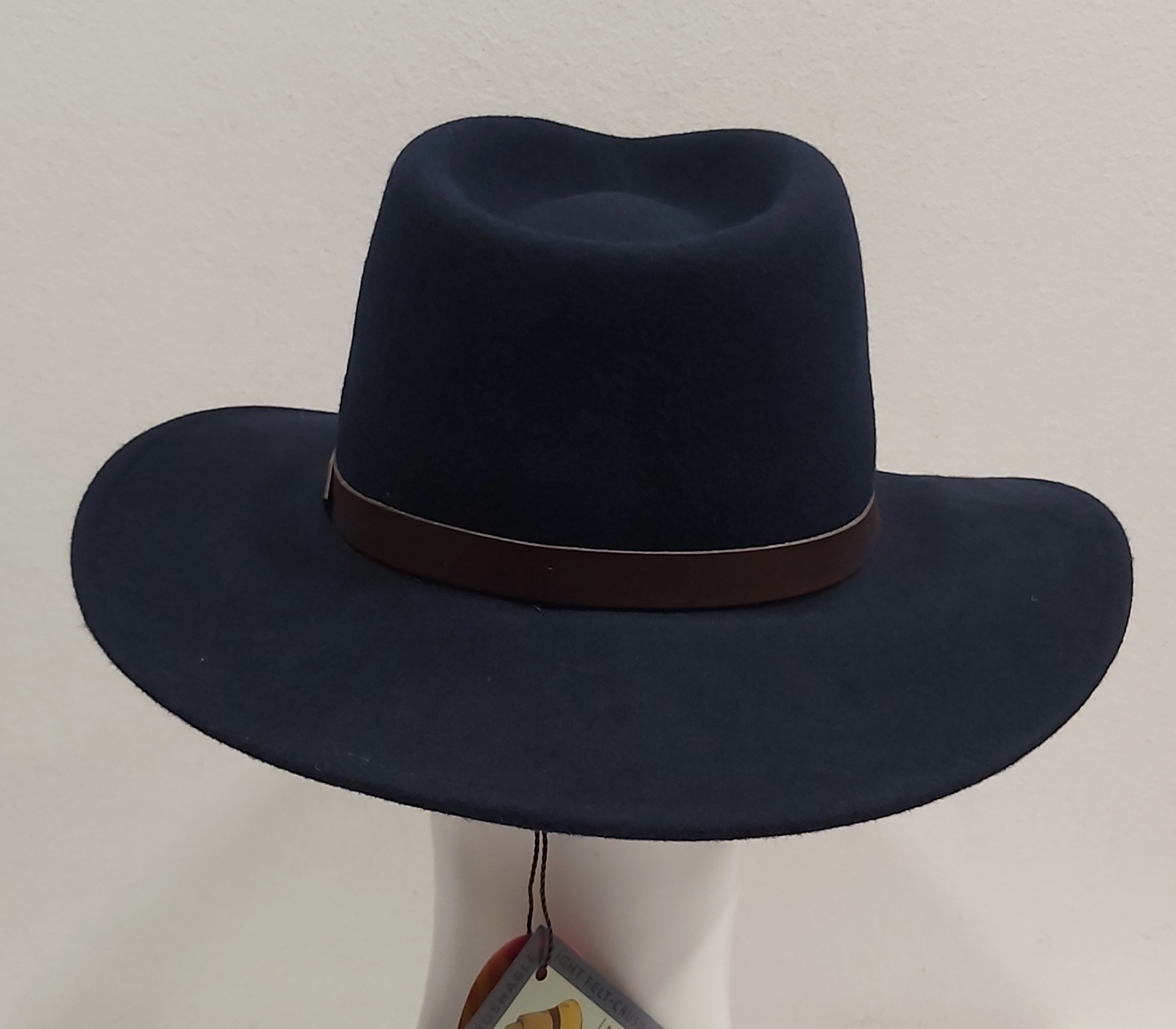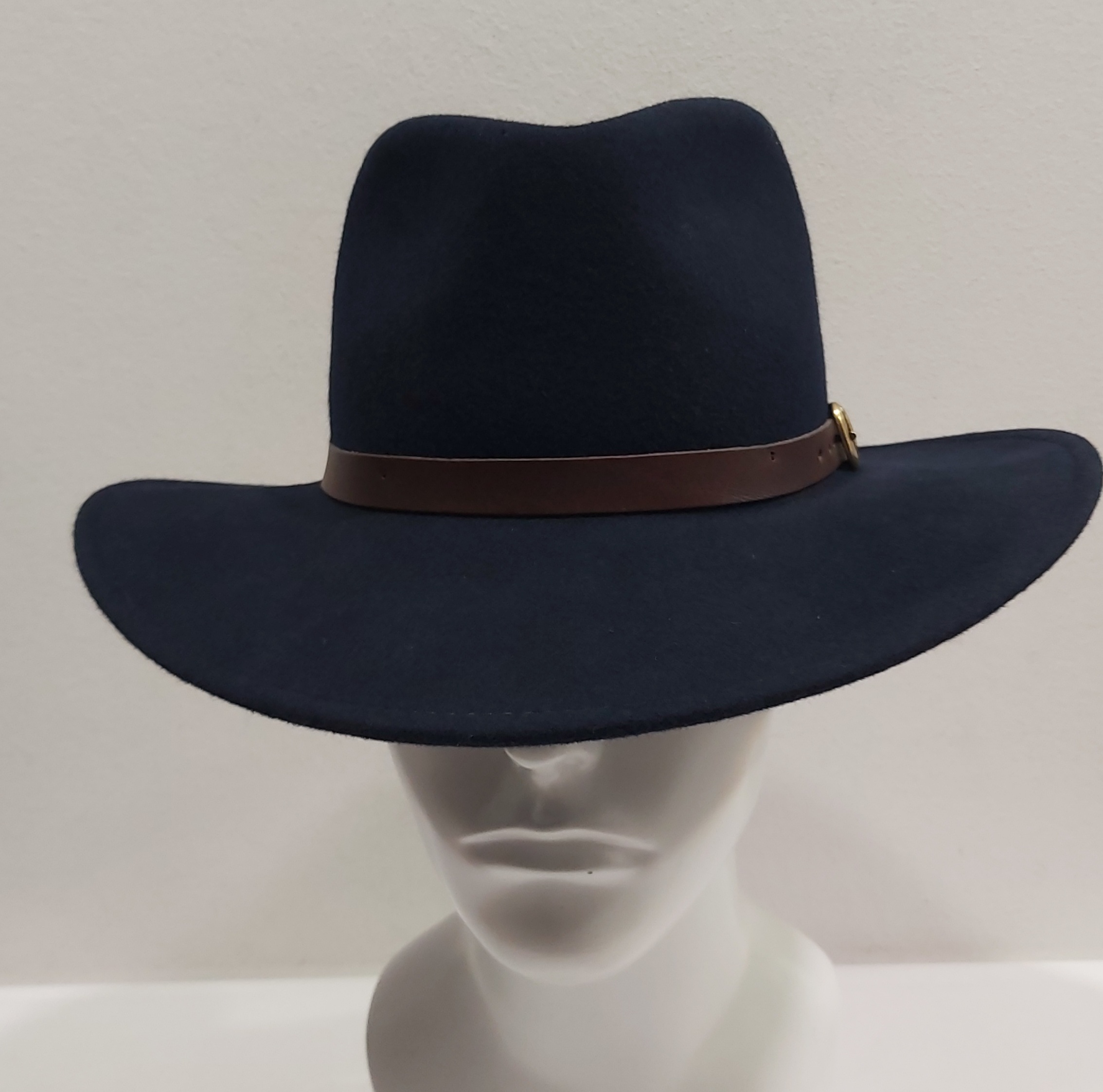 CAPPELLO INDIANA JONES CASUAL FELTRO LANA TESA LARGA BLU CINTURINO PELLE Made in Italy