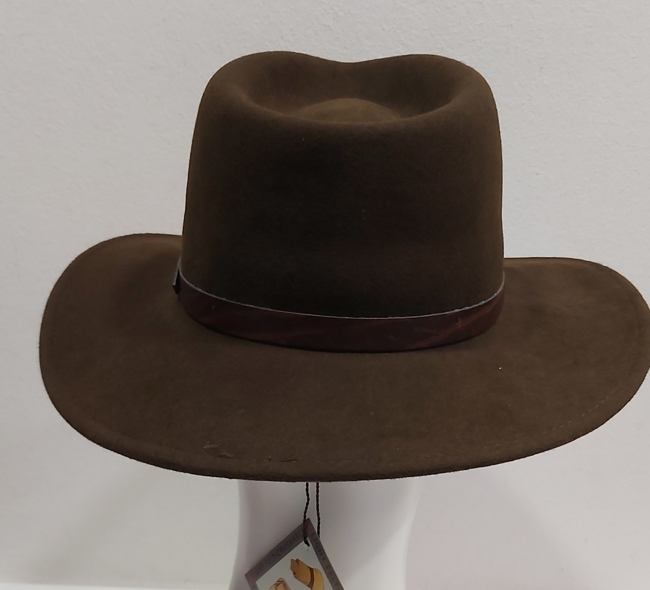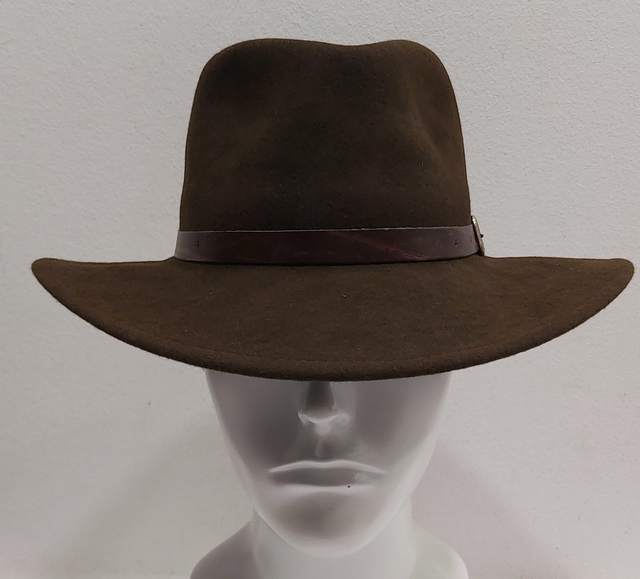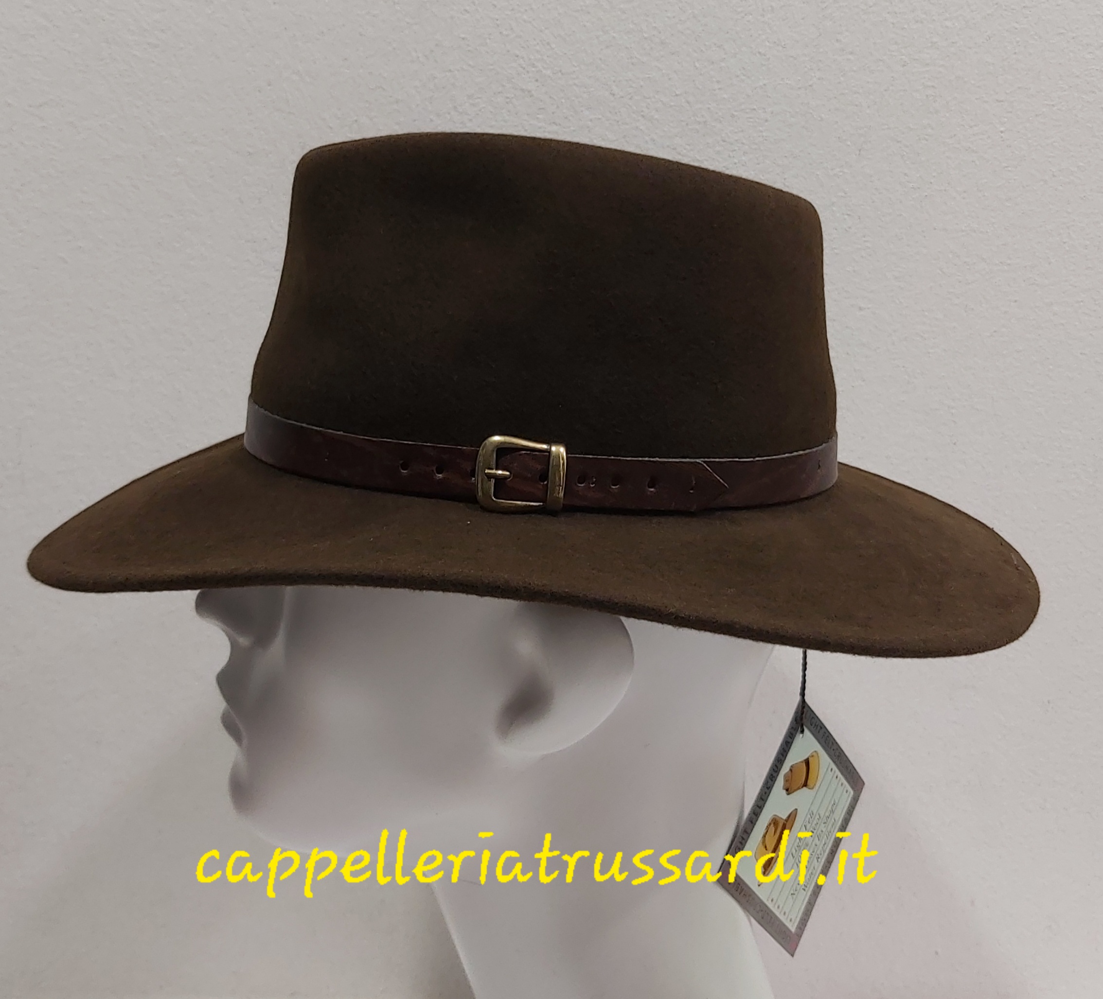 CAPPELLO INDIANA JONES CASUAL FELTRO LANA TESA LARGA MARRONE CINTURINO PELLE Made in Italy