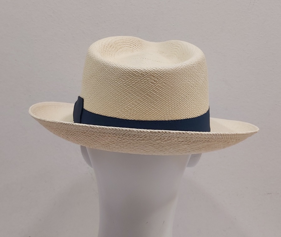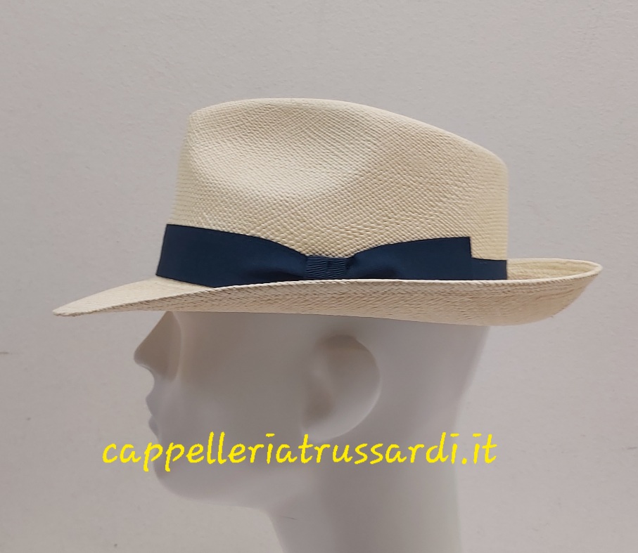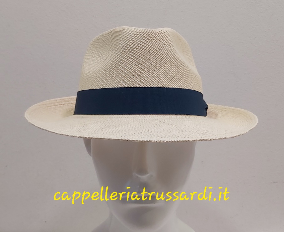 CAPPELLO PANAMA GENUINE HAT ORIGINALE UOMO FASCIA BLU Tesa Larga ALTA QUALITA’
