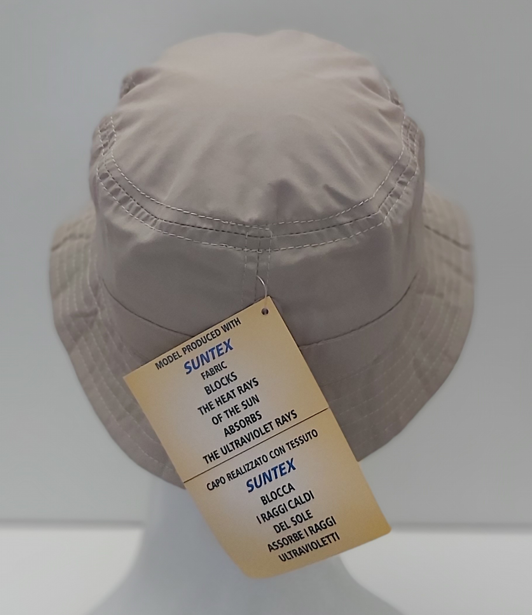 CAPPELLO PESCATORE ESTIVO CAPO REALIZZATO CON TESSUTO SUNTEX: BLOCCA I RAGGI CALDI DEL SOLE ASSORBE I RAGGI ULTRAVIOLETTI UNA ECCELLENTE CAPACITA’ DI MANTENERE UNA TEMPERATURA PIU’ FRESCA SOTTO LA LUCE DEL SOLE COLORE BEIGE TESA 4,5 CM 100% POLIESTERE UNISEX